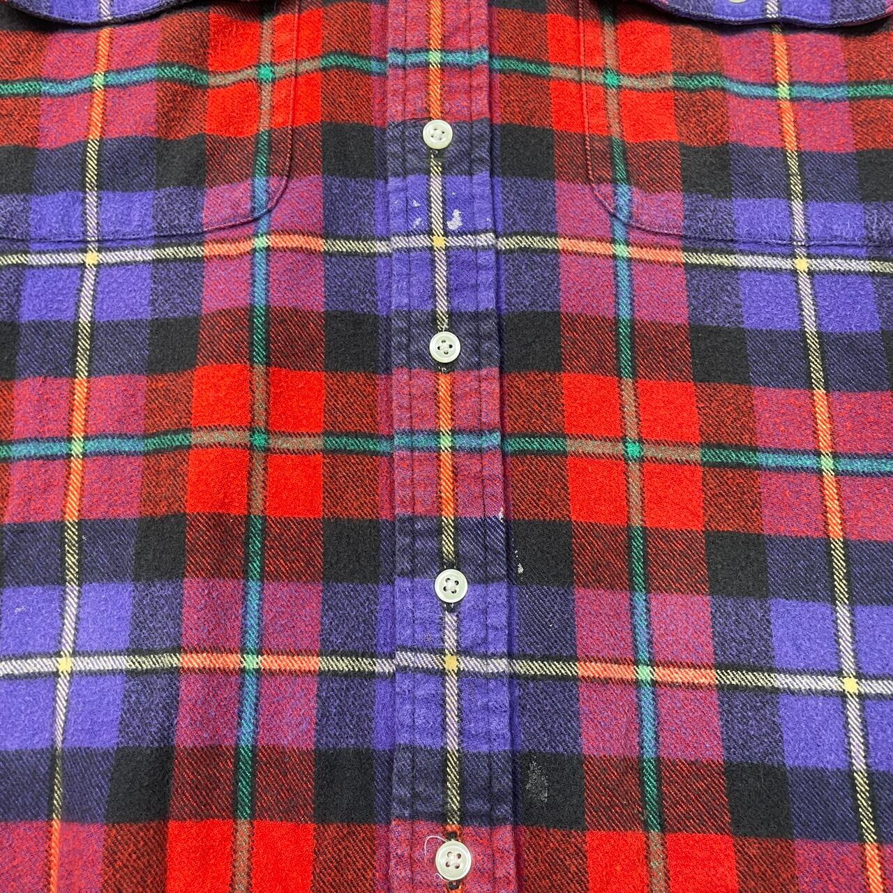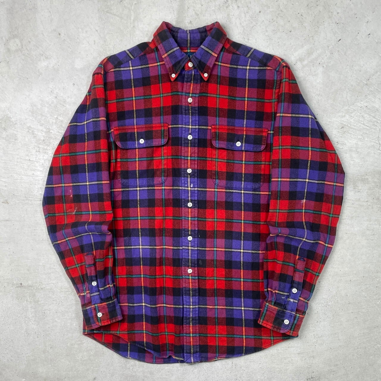 90年代 Polo by Ralph Lauren ポロバイラルフローレン ヘビーネルシャツ チェックシャツ メンズL相当 古着 90s VINTAGE ヴィンテージ RL WORK SHIRT ワークシャツ ポニー無し パープル レッド フェードブラック 紫色 赤色 墨黒【長袖シャツ】/マルチカラー【WS2501-20】