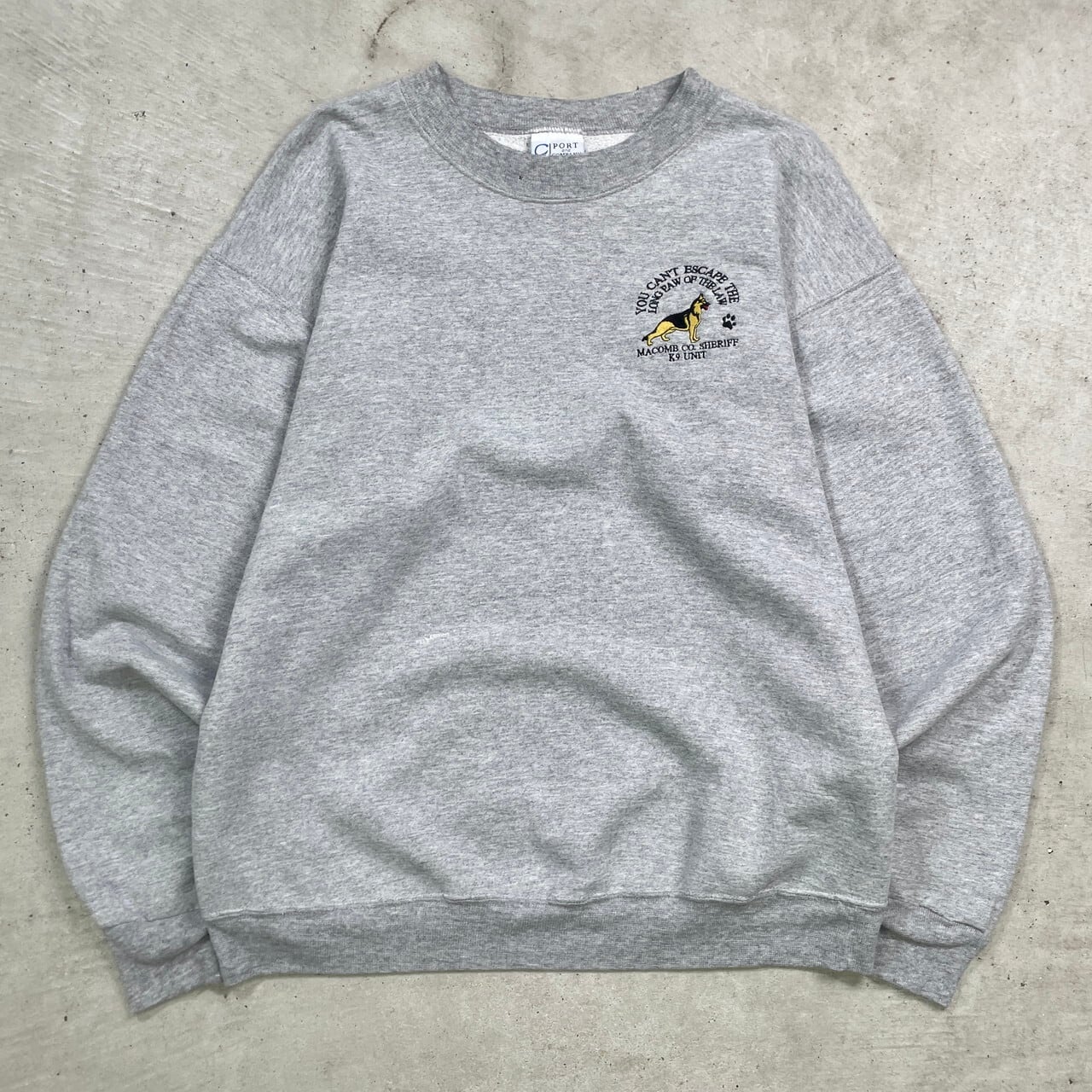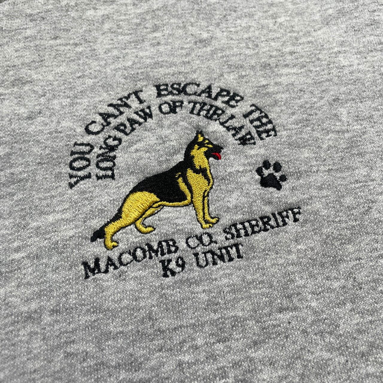MACOMB CO. SHERILL スウェットシャツ アニマル刺繍 イヌ メンズL相当 古着 アメカジ 裏起毛 動物 犬 杢グレー 灰色【スウェット】/グレー【SS50-AW】