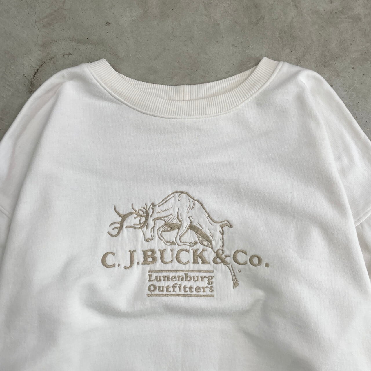 ■90年代 C.J. BUCK&CO. スウェットシャツ アニマル刺繍 メンズL相当 古着 動物 鹿 シカ トレーナー 90s VINTAGE ヴィンテージ 白【スウェット】/ホワイト