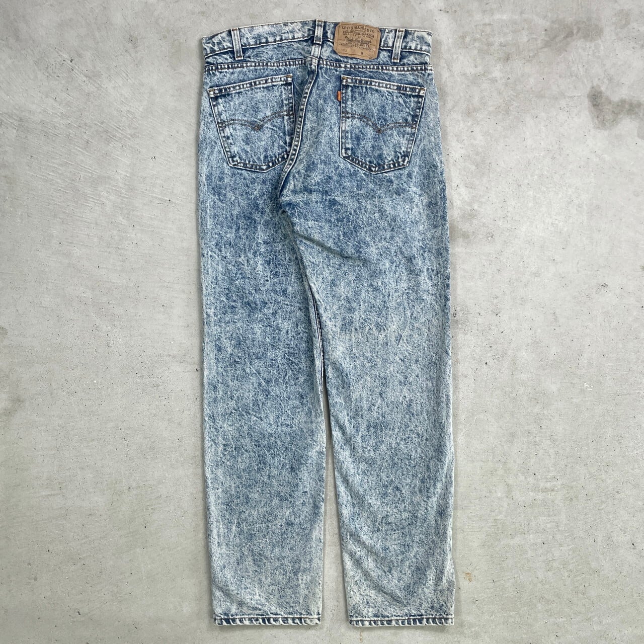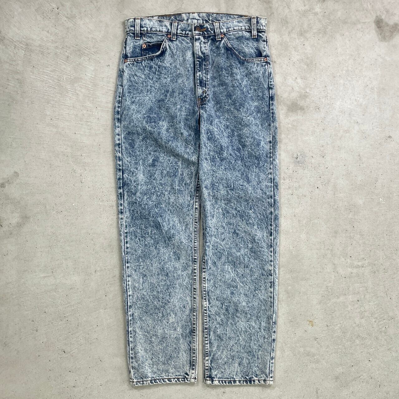 90年代 USA製 Levi's リーバイス 40505 0209 ケミカルウォッシュ デニムパンツ テーパード オレンジタブ メンズW34 古着 90s ヴィンテージ VINTAGE アメカジ ジーンズ アイスブルー【デニムパンツ】/ブルー