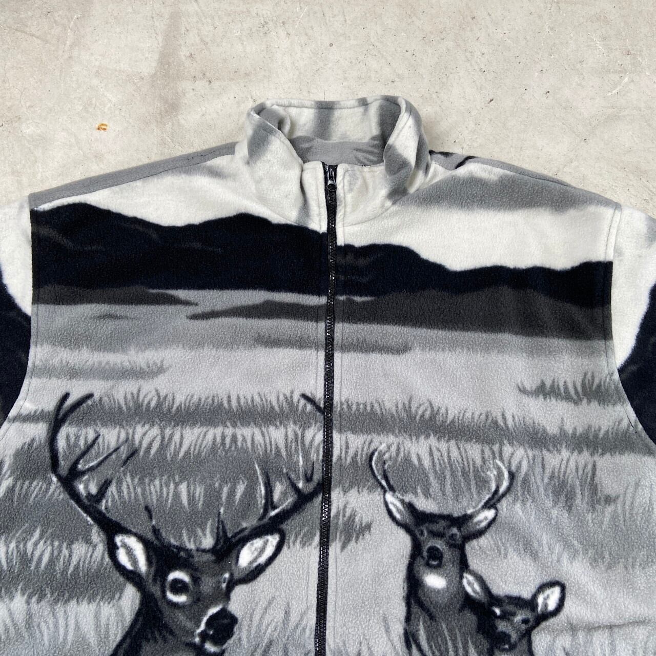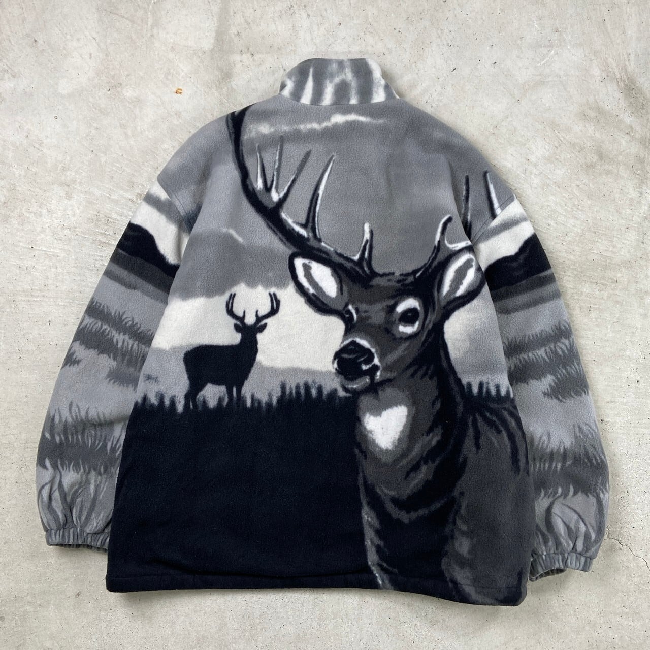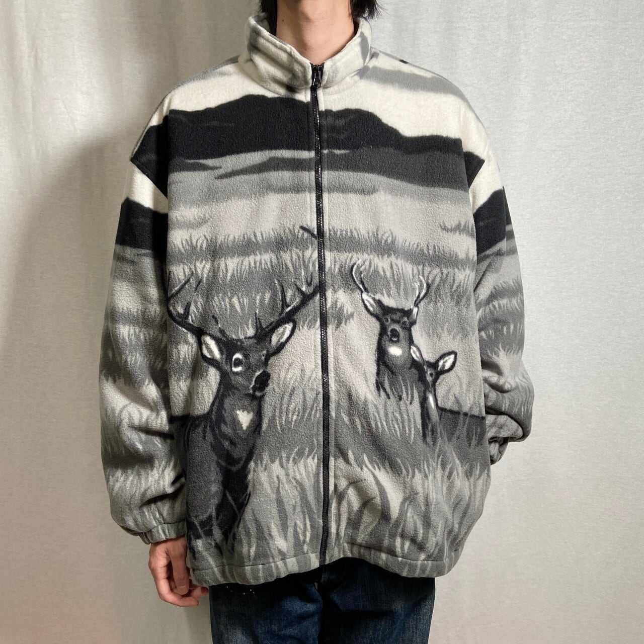 CW CLASSICS 総柄 フリースジャケット アニマル柄 裏ボア オールオーバー メンズ2XL相当 レディース 古着 シカ 鹿 【フリースジャケット】/マルチカラー【SS50-AW】