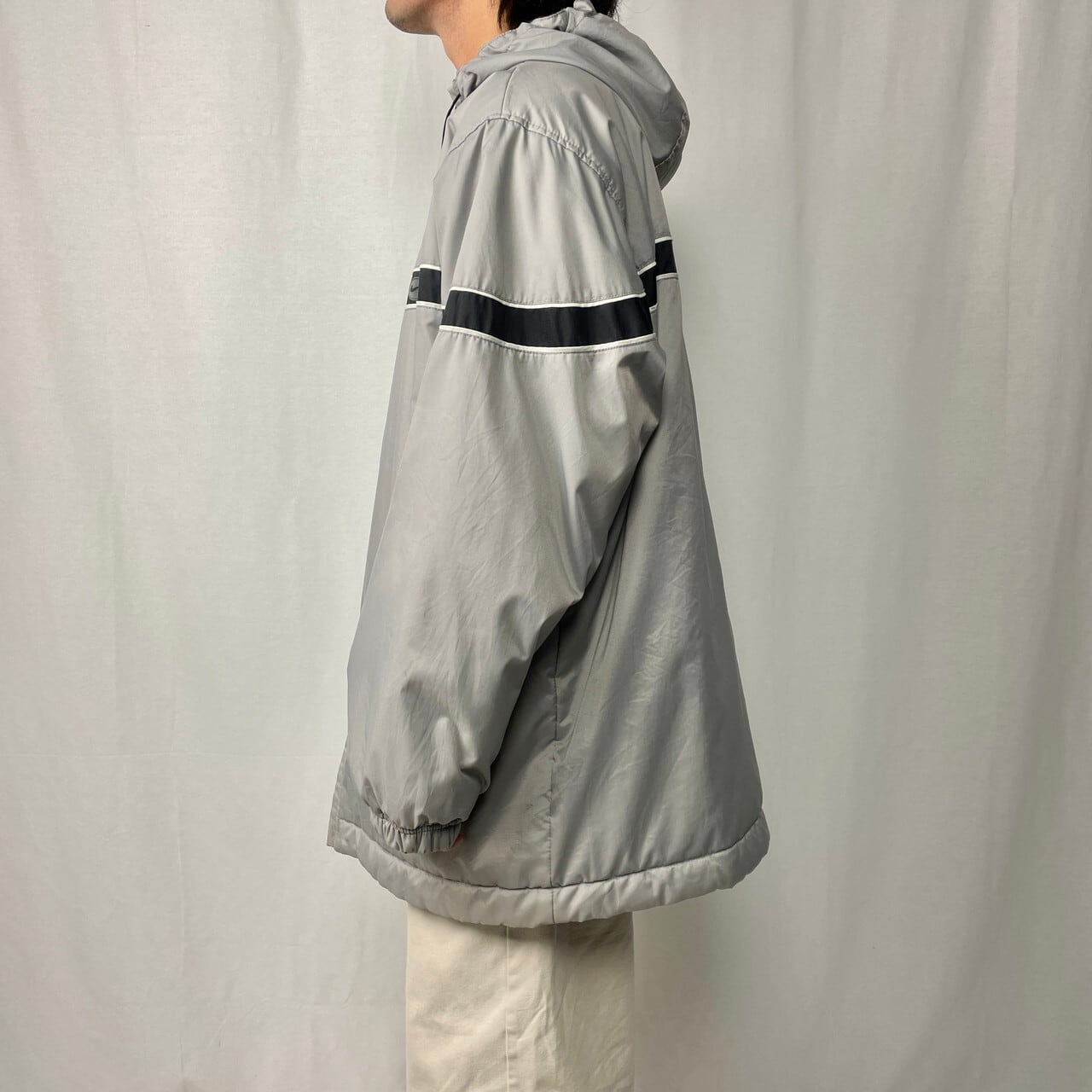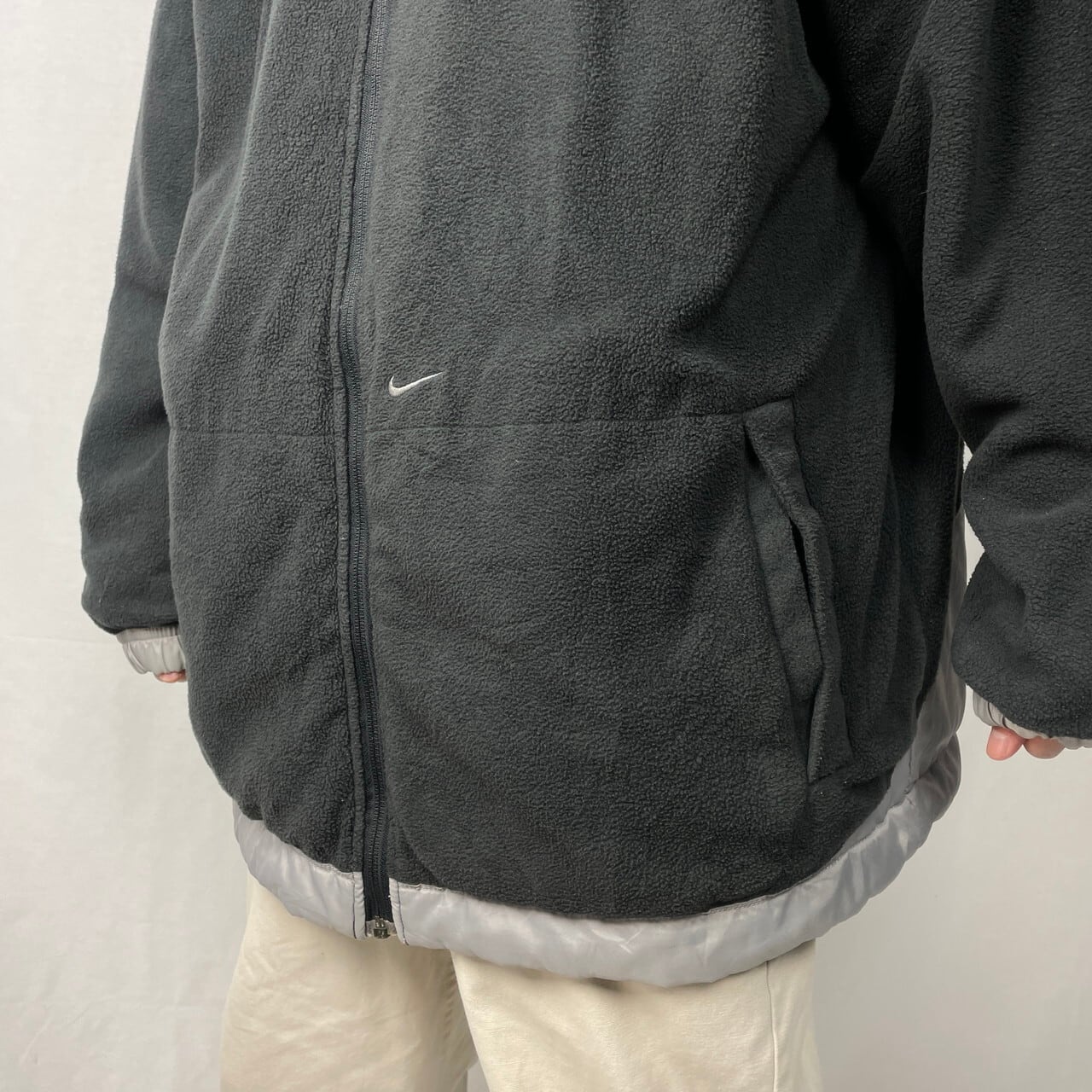 00年代 NIKE ナイキ スウォッシュロゴ刺繍 リバーシブル フリース×ナイロンジャケット メンズXL相当 古着 00s VINTAGE ヴィンテージ Y2K フード付き 中綿入り 灰色【ナイロンジャケット】/グレー【SS50-AW】