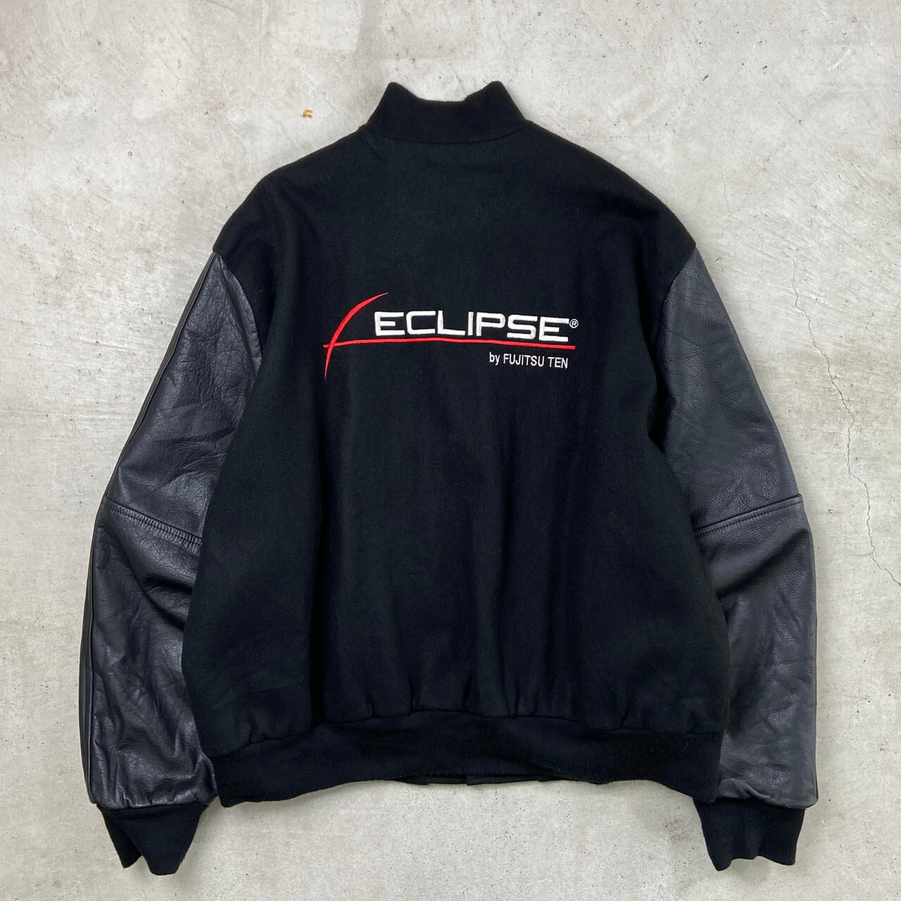90年代 USA製 FUJITSU TEN 富士通 ウールスタジャン 袖レザー ECLIPSE メンズXL 古着 90s ヴィンテージ VINTAGE アドバタイジング 企業ロゴ アメカジ アワードジャケット 黒色【ブルゾン・ジャケット】/ブラック【SS30-AW】