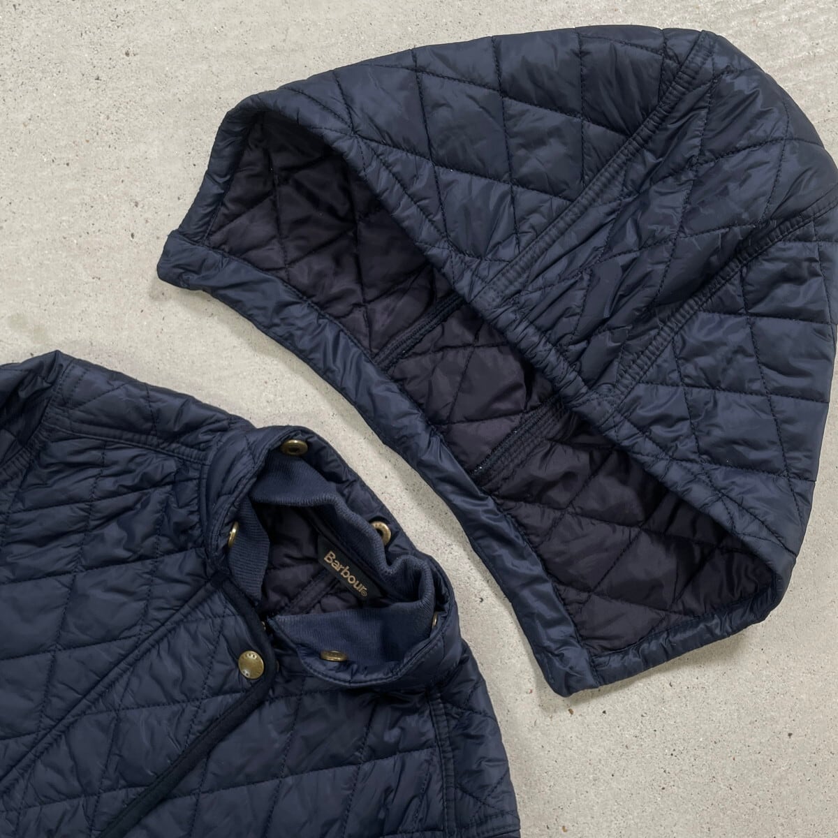 【Kids】Barbour バブアー キルティングジャケット キッズ13-14歳相当 古着 フード着脱可能 子供服 紺色【ブルゾン・ジャケット】/ネイビー【SS50-AW】