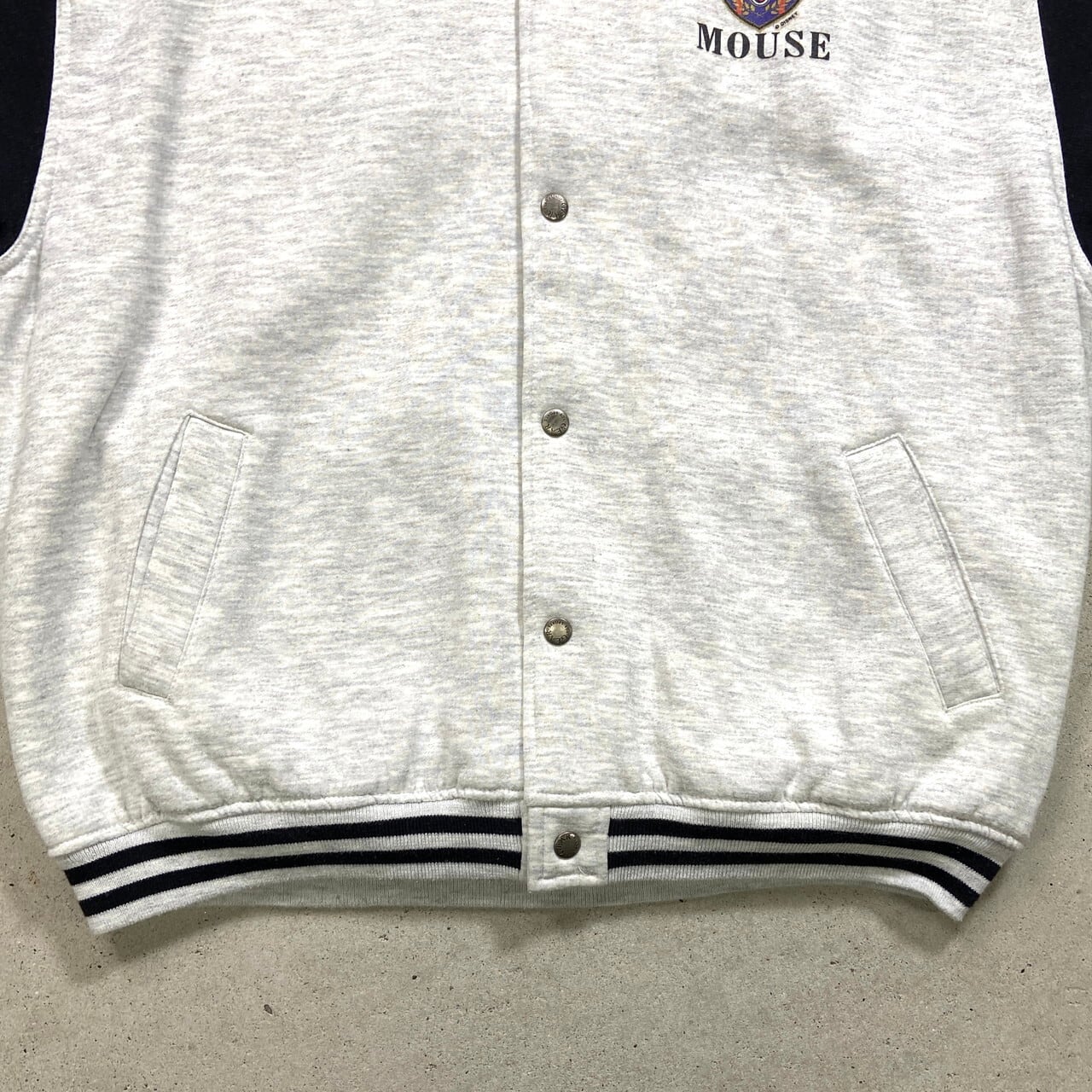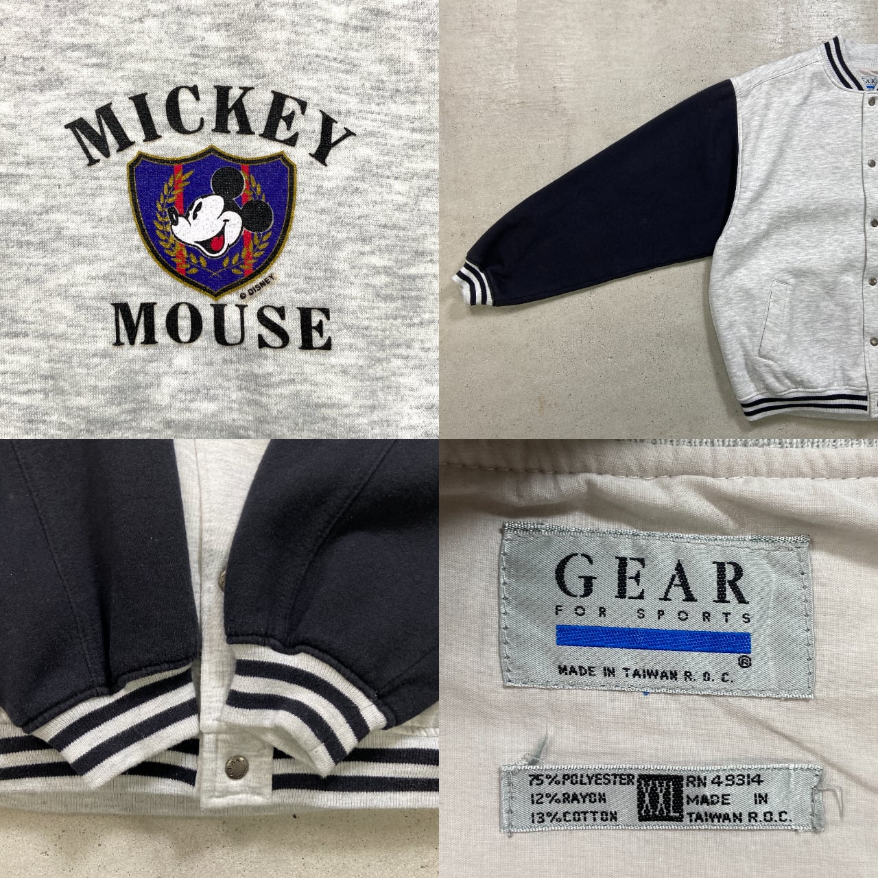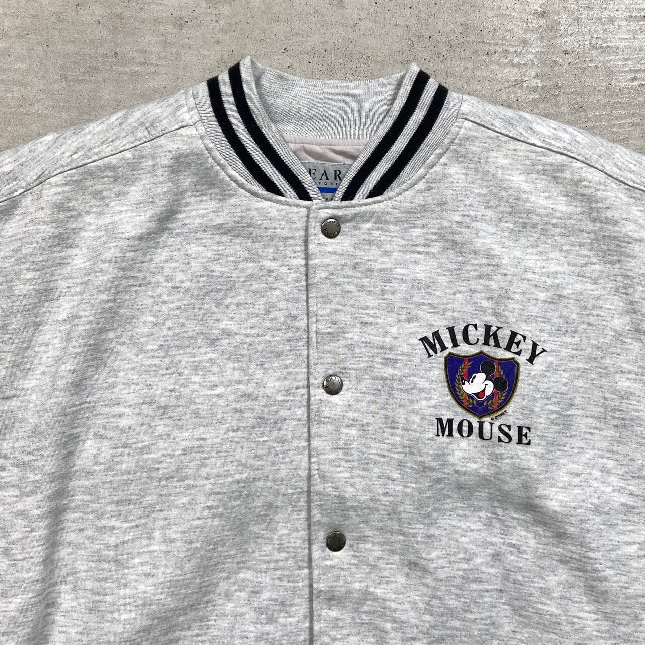 ■90年代 DISNEY MICKEY MOUSE ディズニー ミッキーマウス スウェット スタジャン メンズ2XL 古着 90s VINTAGE ヴィンテージ アワードジャケット キャラクター 霜降りグレー ブラック 黒色【ブルゾン・ジャケット】/マルチカラー
