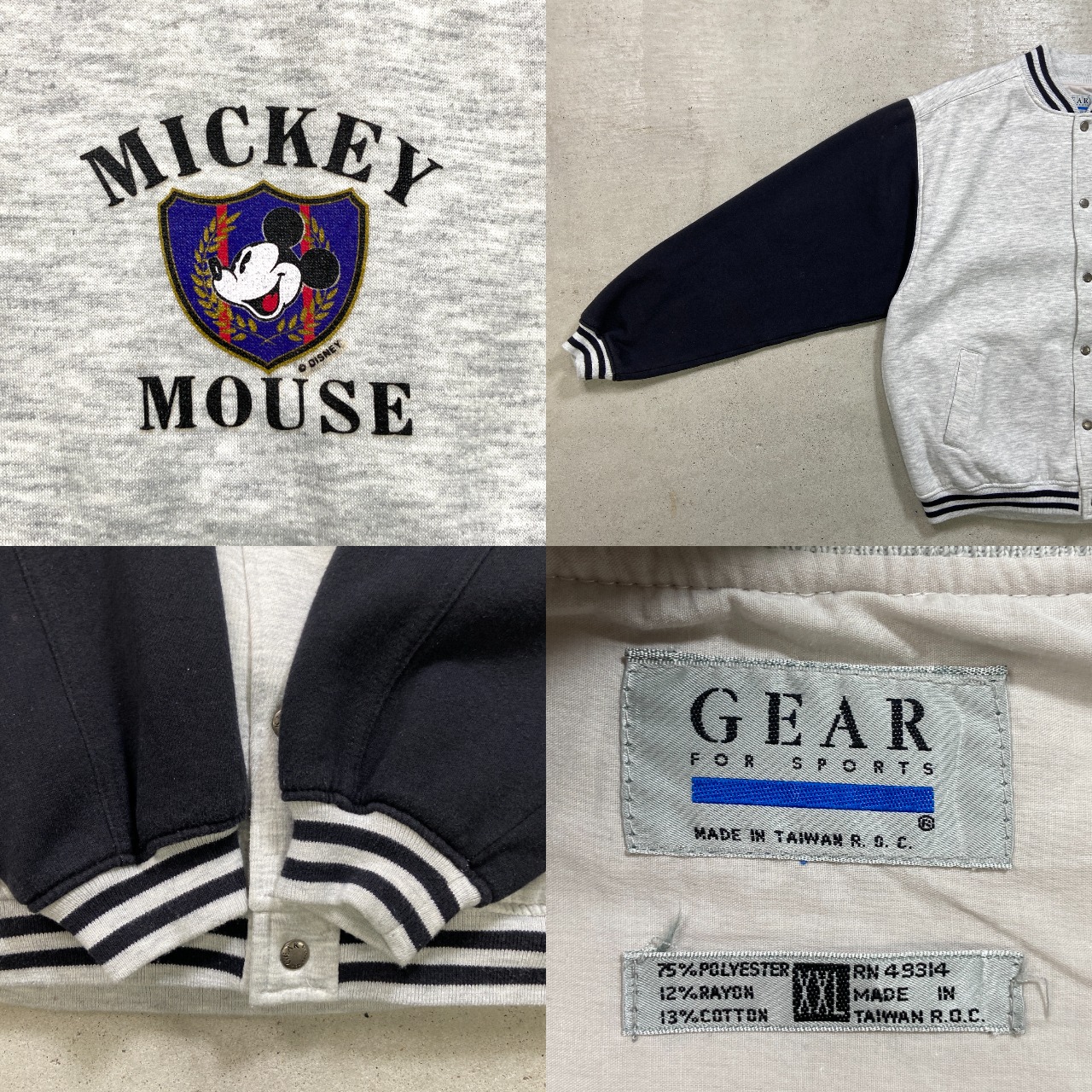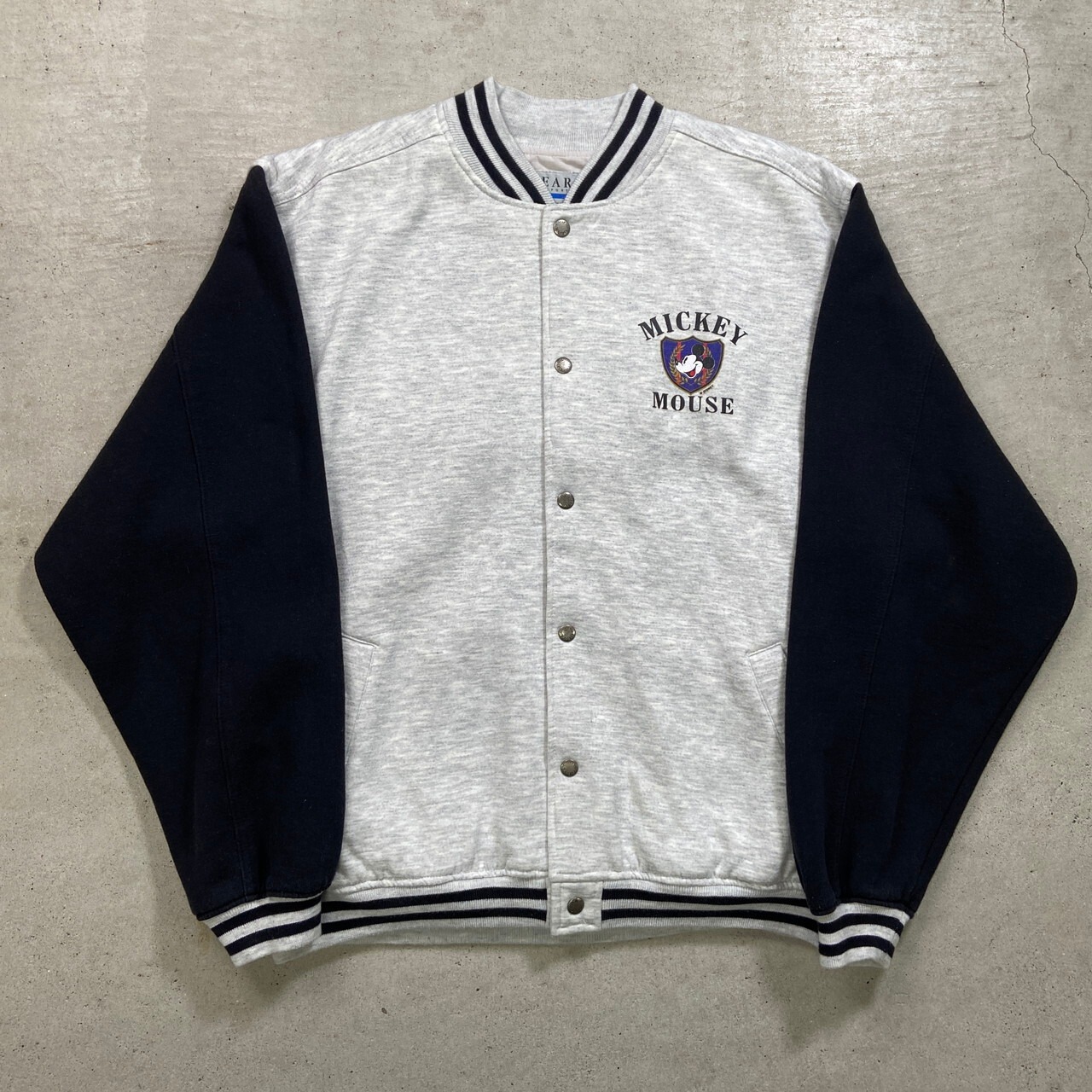 90年代 DISNEY MICKEY MOUSE ディズニー ミッキーマウス スウェット スタジャン メンズ2XL 古着 90s VINTAGE ヴィンテージ アワードジャケット キャラクター 霜降りグレー ブラック 黒色【ブルゾン・ジャケット】/マルチカラー【SS26-30】