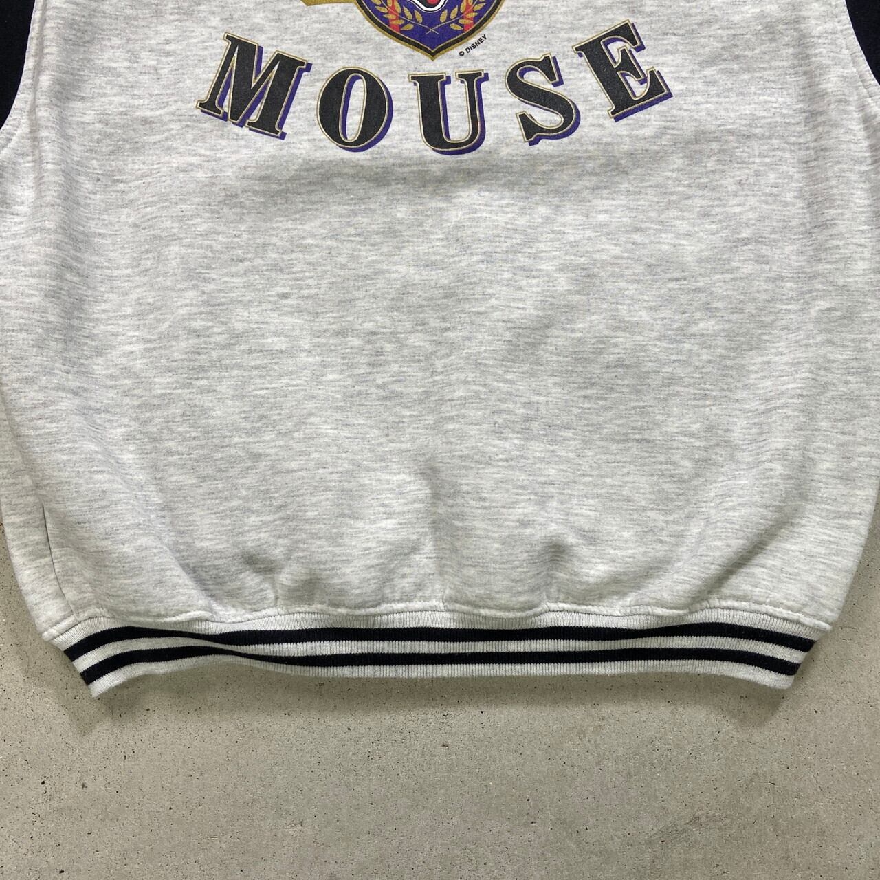 90年代 DISNEY MICKEY MOUSE ディズニー ミッキーマウス スウェット スタジャン メンズ2XL 古着 90s VINTAGE ヴィンテージ アワードジャケット キャラクター 霜降りグレー ブラック 黒色【ブルゾン・ジャケット】/マルチカラー【BS25-30】