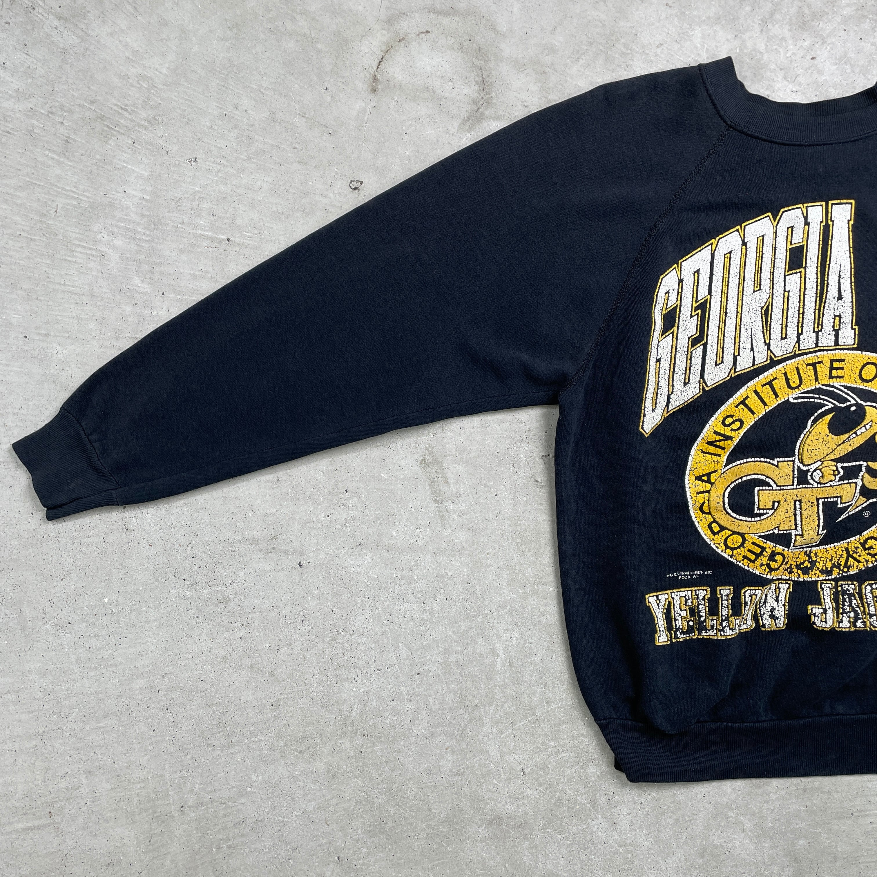 ■80年代 USA製 Tultex スウェットシャツ ラグランスリーブ カレッジプリント メンズL 古着 アメカジ 80s VINTAGE ヴィンテージ トレーナー フェードブラック 黒色【スウェット】/ブラック