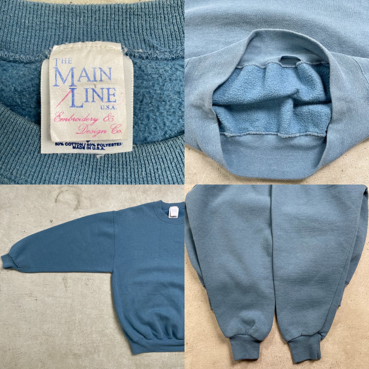 ■ 90年代 USA製 THE MAIN LINE ワンポイント刺繍 スウェットシャツ メンズM 古着 90s VINTAGE ヴィンテージ VINTAGE トレーナー アイスブルー【スウェット】/ブルー