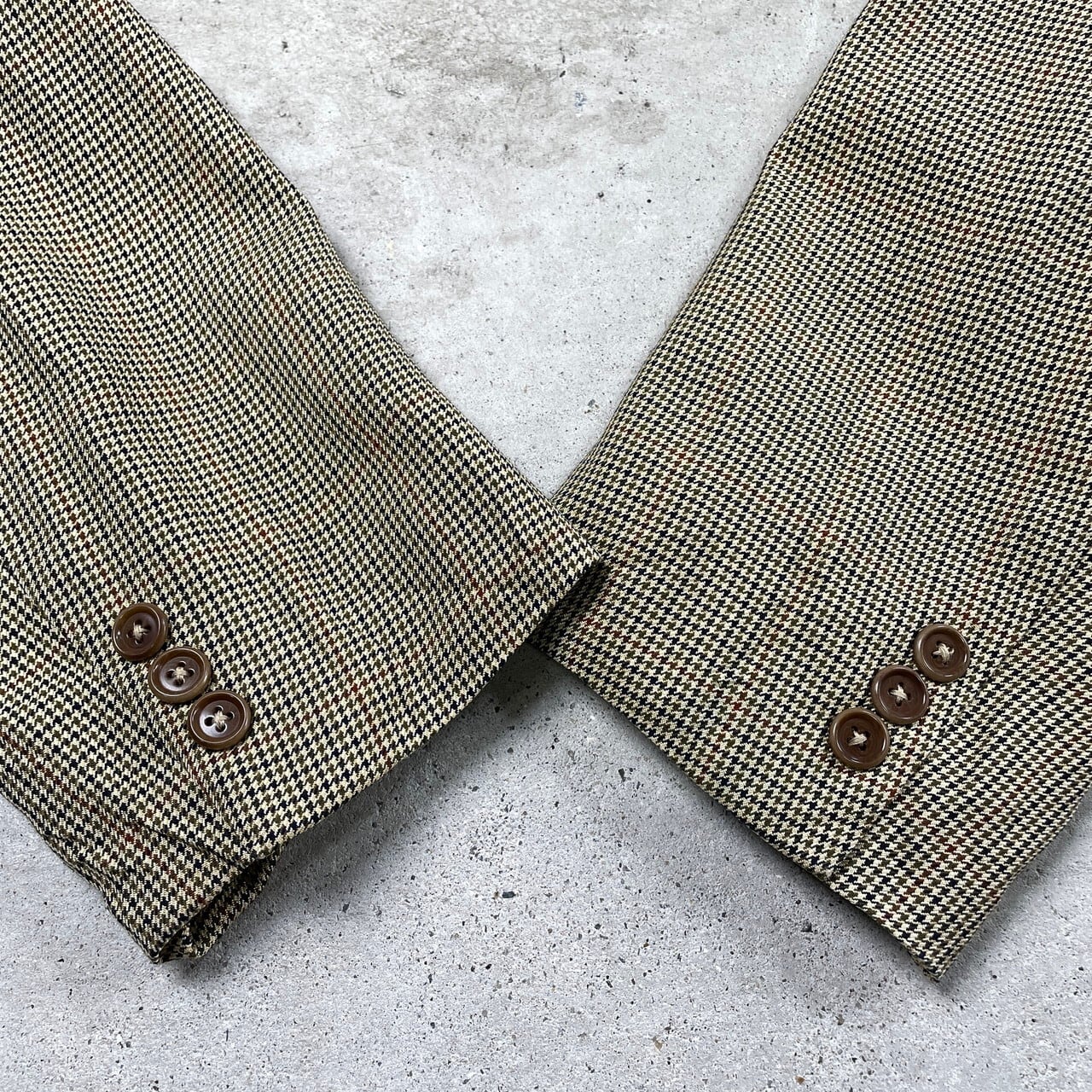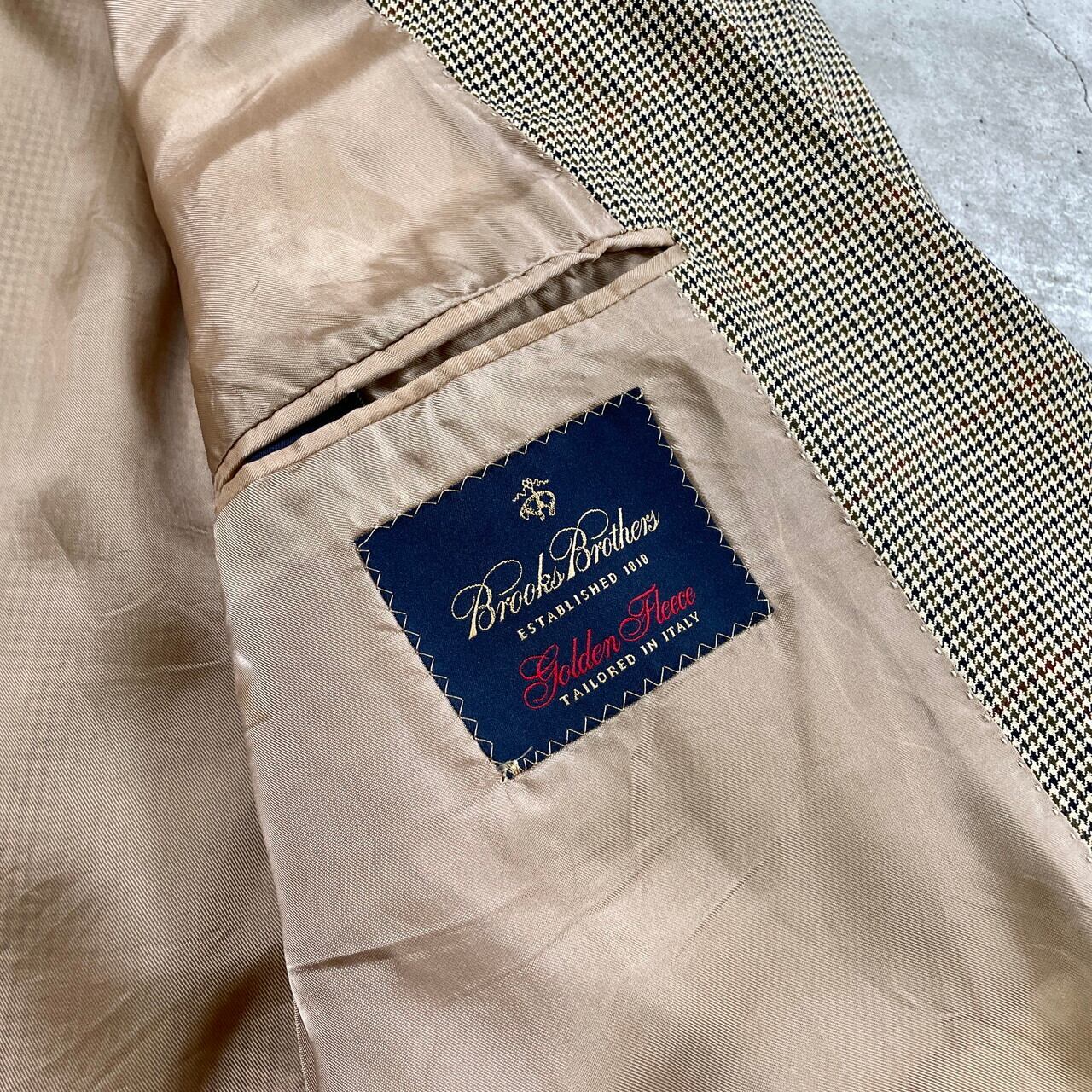■00年代 イタリア製 BROOKS BROTHERS ブルックスブラザーズ テーラードジャケット シルク×ウール メンズXL相当 古着 00s ヴィンテージ VINTAGE Y2K 千鳥格子柄 ベージュ ネイビー 紺色【テーラードジャケット】/ベージュ