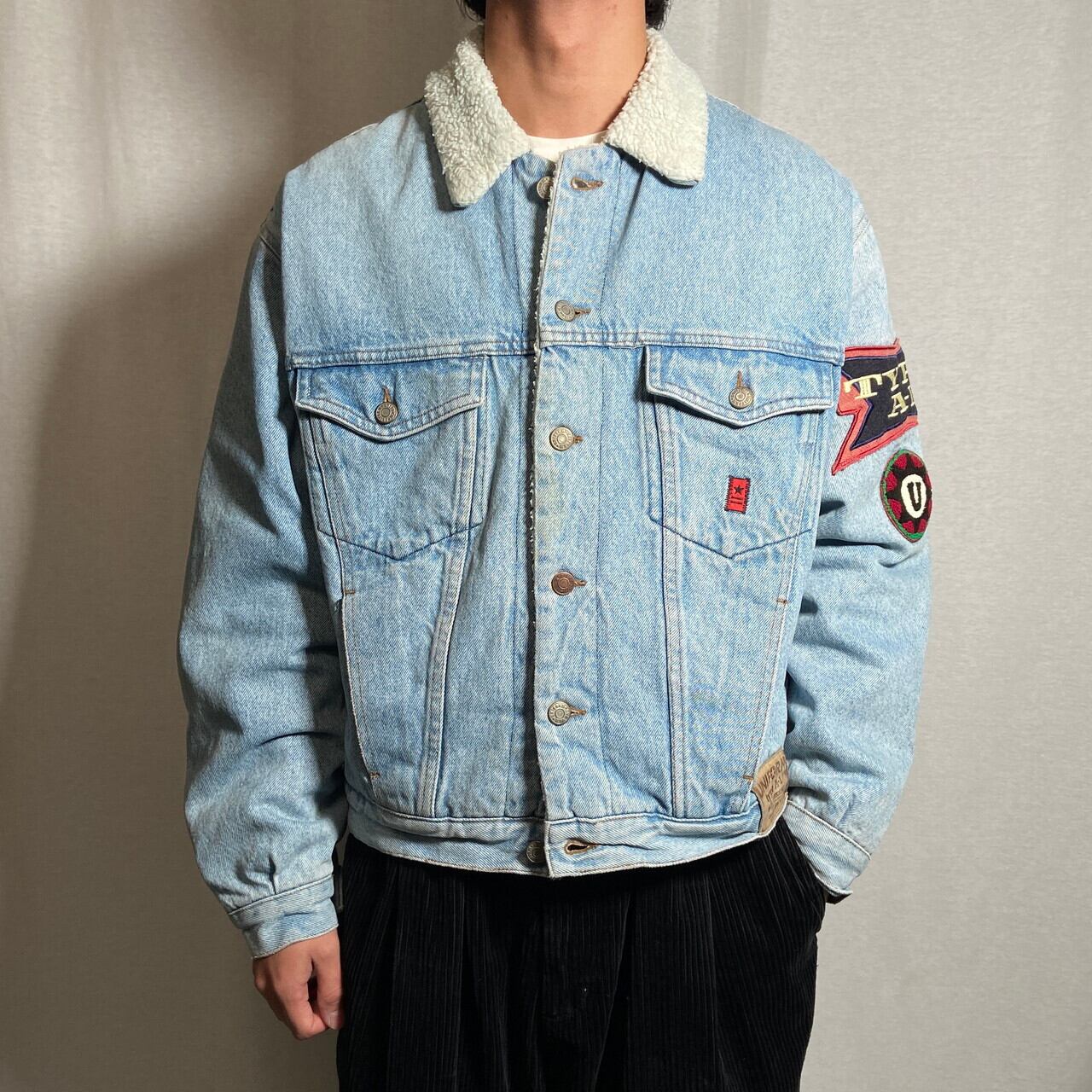 80年代 USA製 UNIFORM CGA デニムボアジャケット ロゴワッペン メンズM相当 古着 80s ヴィンテージ VINTAGE アメカジ 【デニムジャケット】/ブルー【SS30-AW】