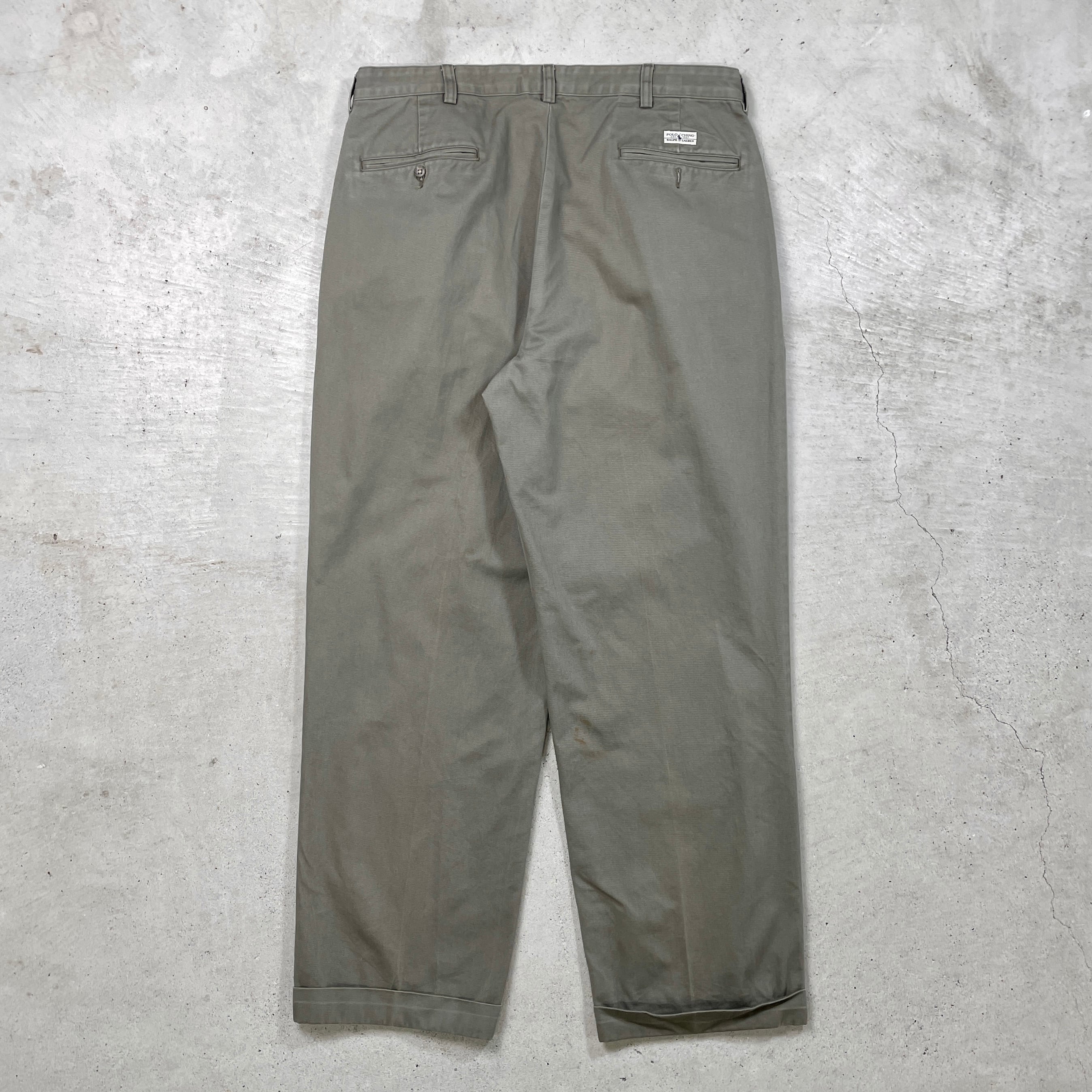 ■90年代 Polo by Ralph Lauren ポロバイラルフローレン チノパンツ 2タック ワイド メンズW36 古着 90s アメカジ VINTAGE ヴィンテージ ポロチノ カーキグリーン オリーブ【チノパンツ,コットンパンツ】/カーキグリーン