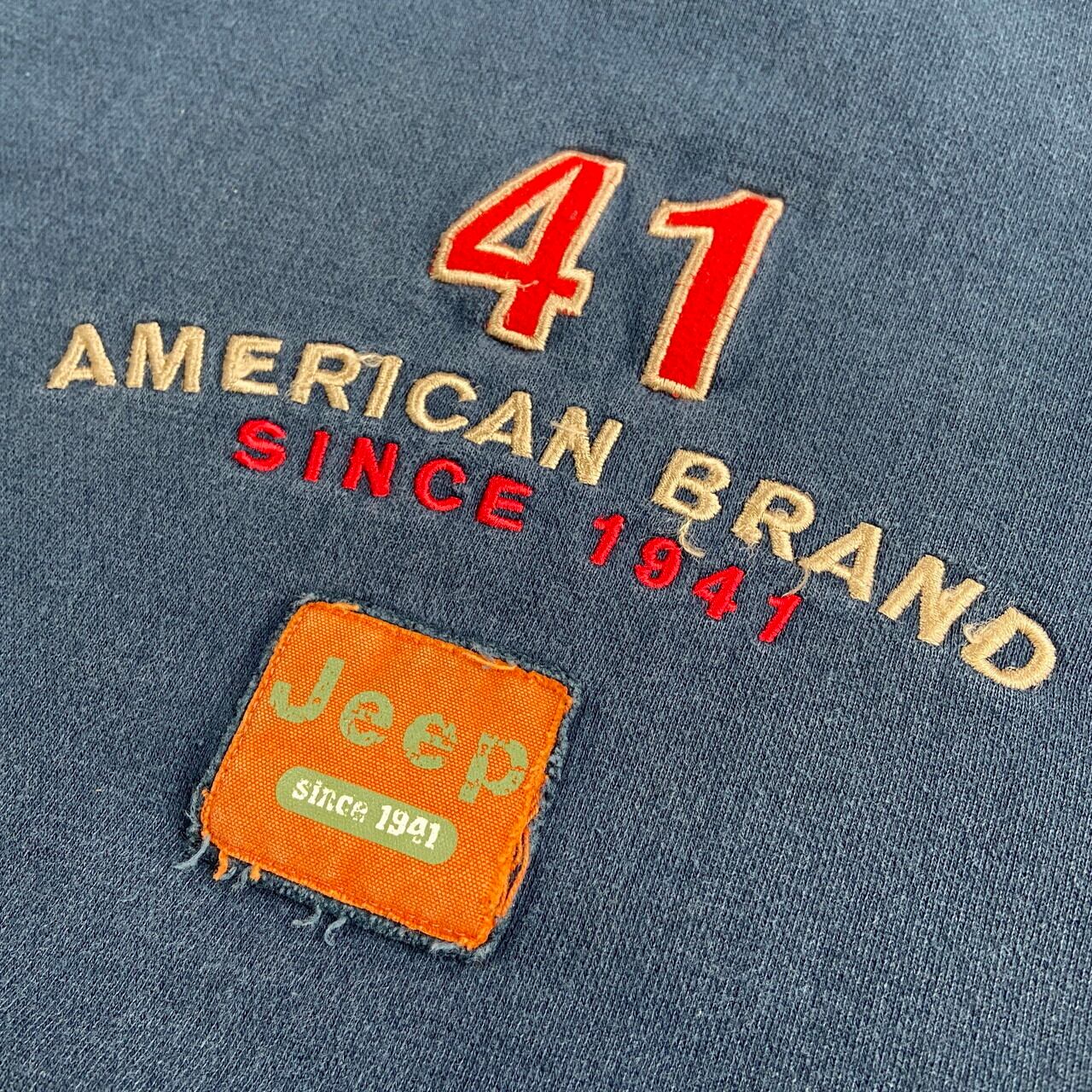 ■Jeep ジープ 企業ロゴ スウェットシャツ メンズXL 古着 車 前Vガゼット アメカジ リバースタイプ アドバタイジング 紺色【スウェット】/ネイビー