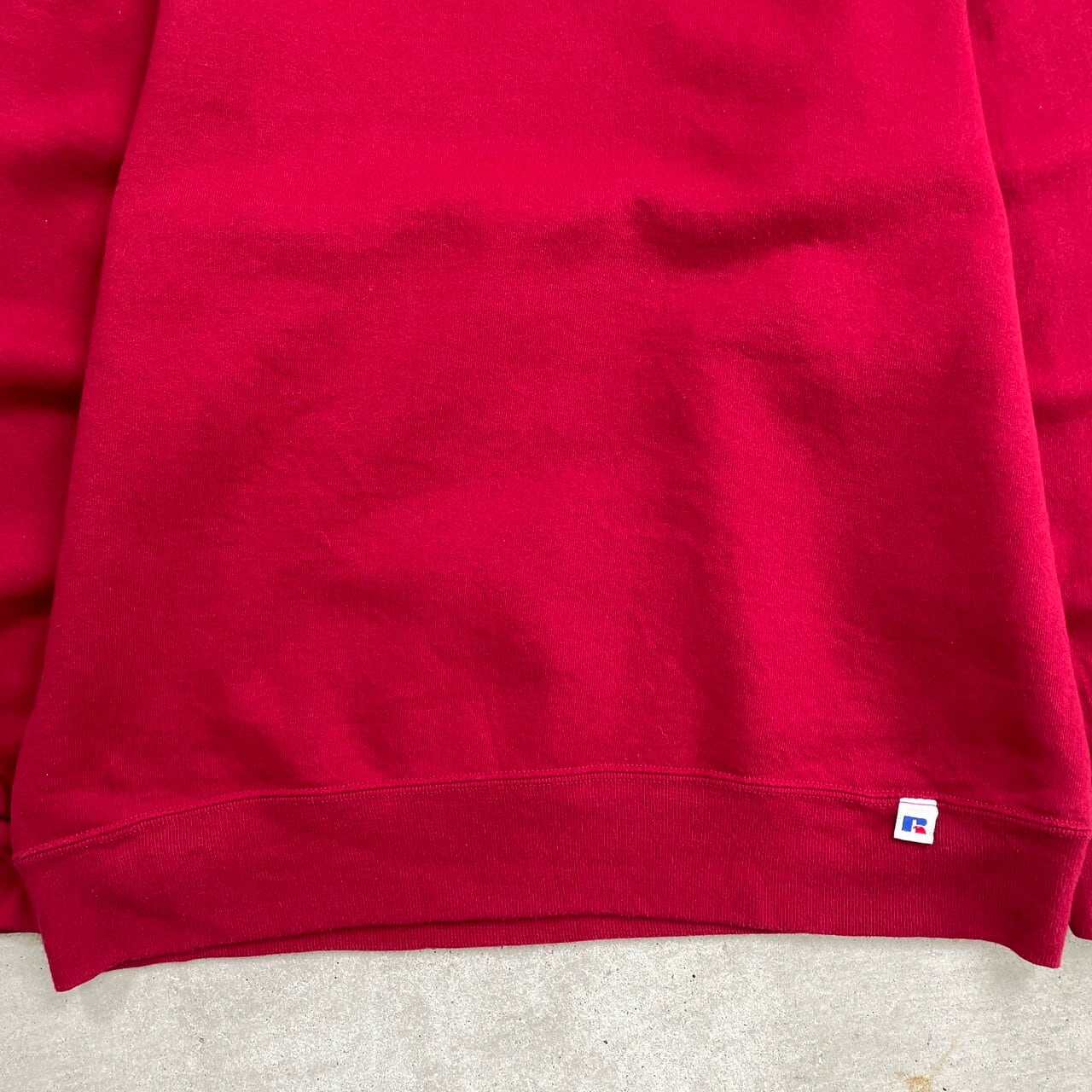 ■90年代 USA製 RUSSELL ATHLETIC ラッセル スウェットシャツ 企業ロゴ刺繍 メンズL 古着 90s 前V ヴィンテージ VINTAGE 前Vガゼット アメカジ トレーナー ボルドー えんじ【スウェット】/ワインレッド