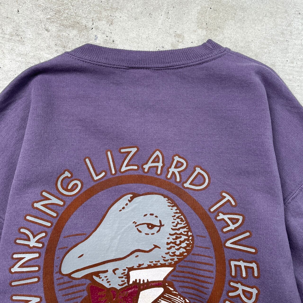 ■00年代 WINKING LIZARD TAVERN 企業ロゴプリントスウェットシャツ アニマル メンズM 古着 00s Y2K ヴィンテージ VINTAGE 動物 ワンポイントロゴ トレーナー 紫色【スウェット】/パープル