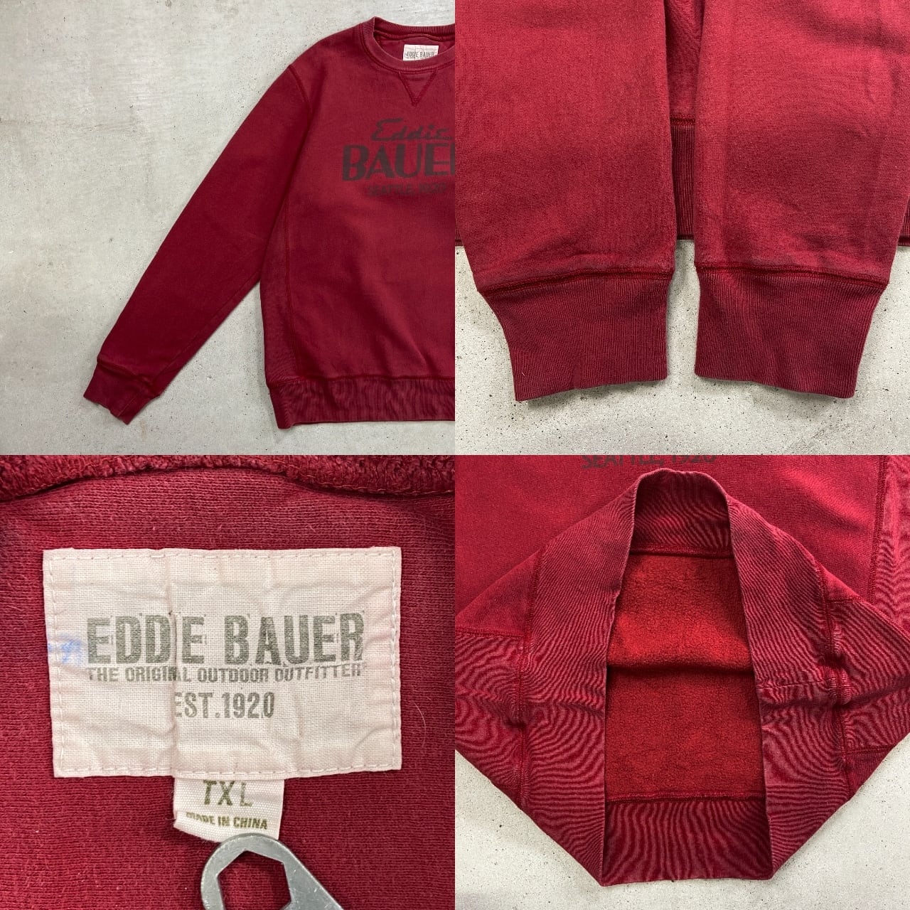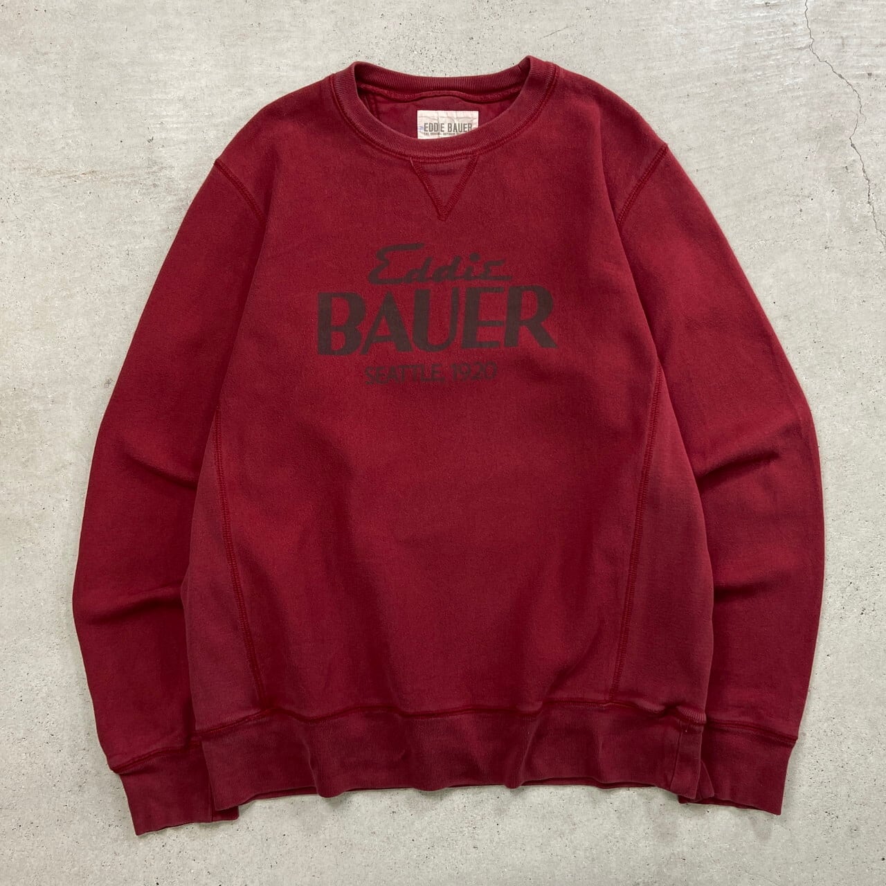 Eddie Bauer エディーバウアー ブランドロゴプリント スウェットシャツ リバースタイプ メンズXL 古着 アメカジ 前Vガゼット アウトドア 裏起毛 えんじ ボルドー【スウェット】/ワインレッド【SS50-AW】