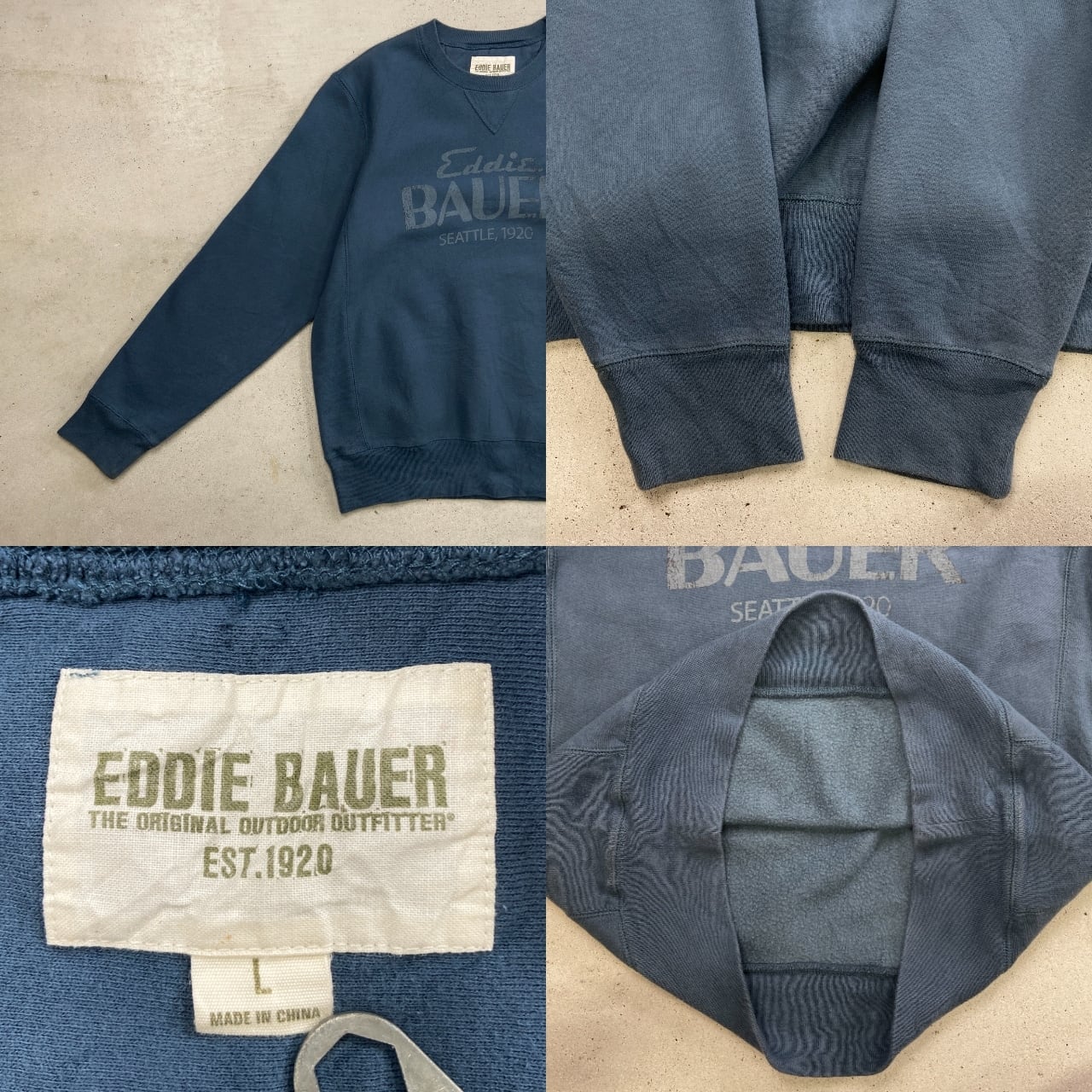 ■Eddie Bauer エディーバウアー ブランドロゴプリント スウェットシャツ リバースタイプ メンズL 古着 アメカジ 前Vガゼット アウトドア 裏起毛 藍色【スウェット】/ネイビー