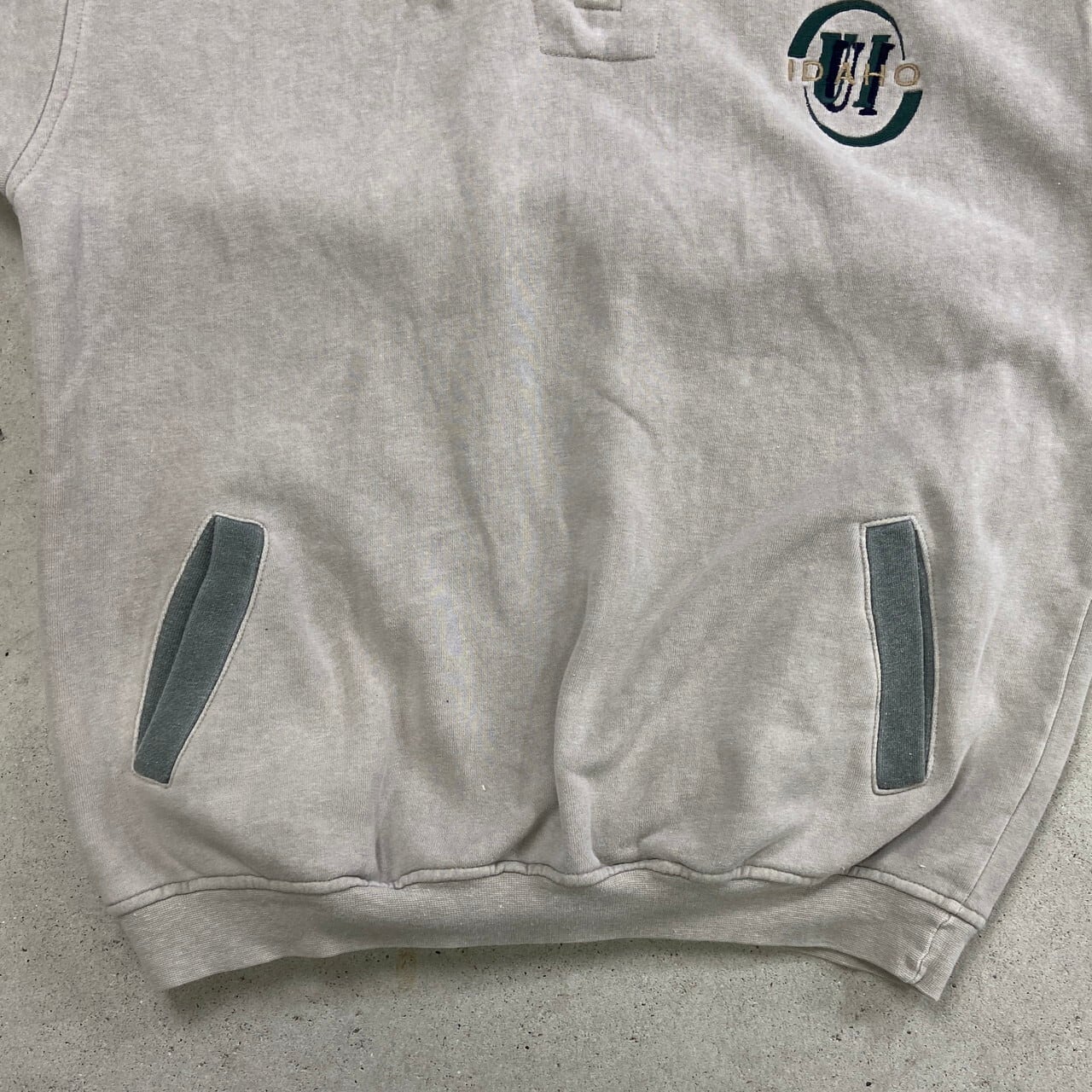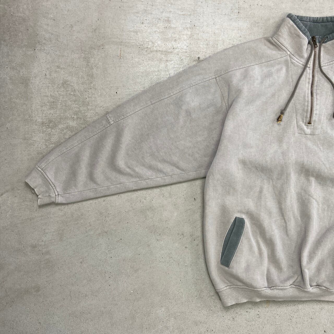 ■ COMFORT CLOTHING IDAHO アイダホ ハーフジップ スウェットシャツ ワンポイントロゴ刺繍 メンズL 古着 アメカジ ドローコード サイドポケット ライトベージュ【スウェット】/ベージュ
