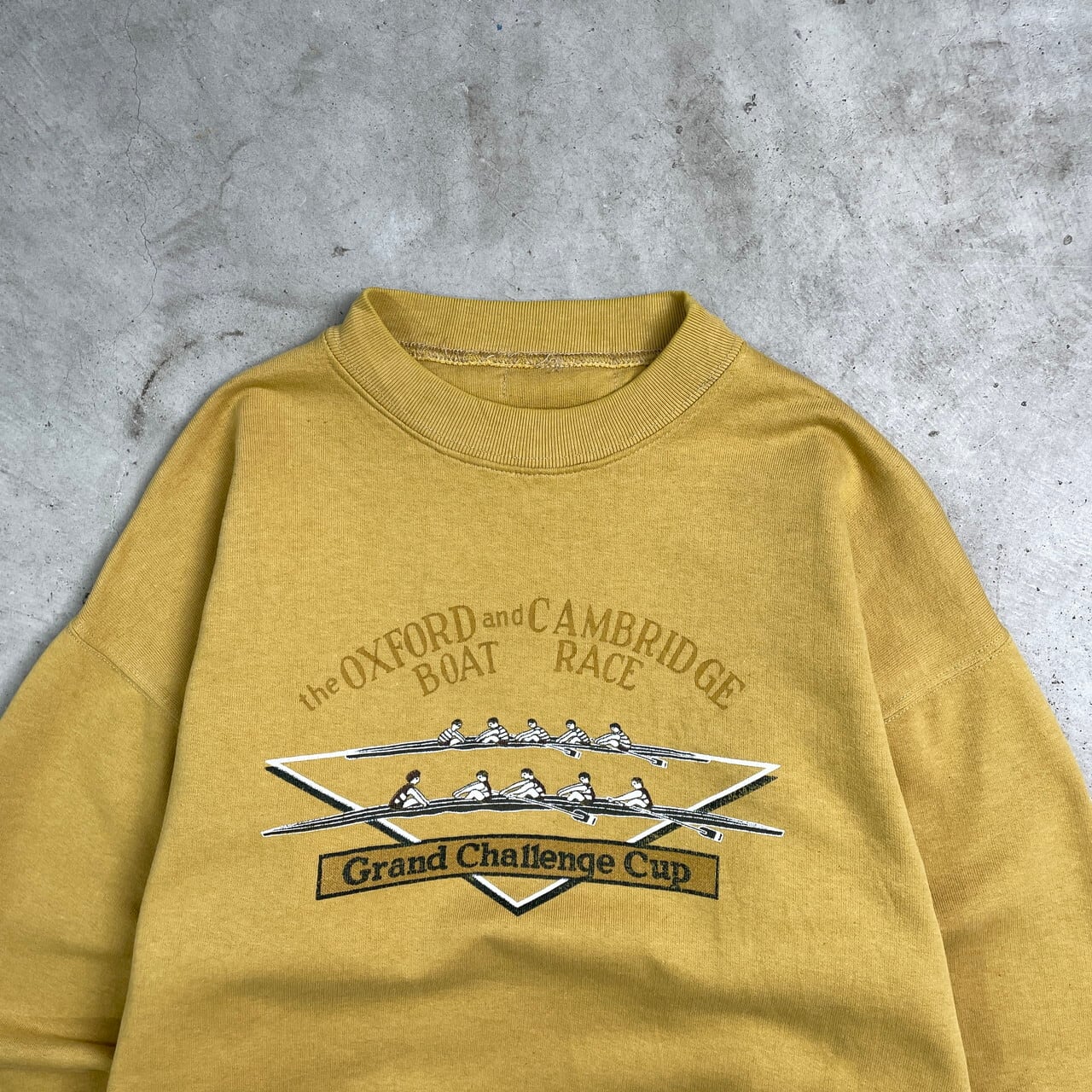 ■ユーロ ポルトガル製 The Oxford & Cambridge Boat Race プリントスウェットシャツ メンズS相当 レディースM相当 古着 ヴィンテージ VINTAGE トレーナー マスタードイエロー カラシ色 黄色【トレーナー】/イエロー