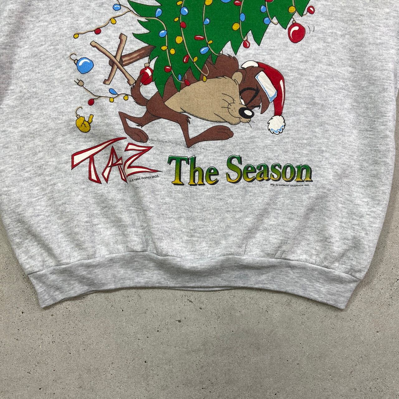 90年代 Looney Tunes ルーニー テューンズ タズマニアンデビル スウェットシャツ メンズM相当 レディース 古着 90s キャラクター ヴィンテージ VINTAGE トレーナー キャラクター クリスマス WARNER BROS 灰色【スウェット】/グレー【SS50-AW】