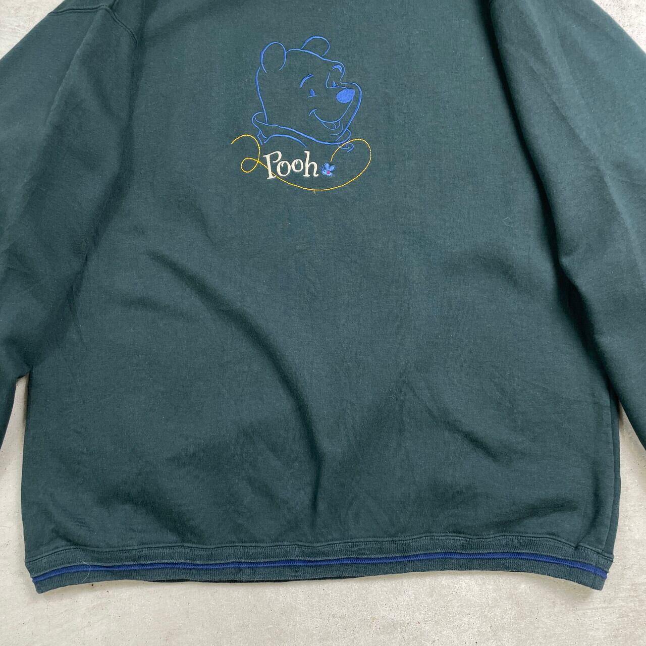 90年代 Pooh ディズニー くまのプーさん キャラクター刺繍 スウェットシャツ メンズXL レディース 古着 90s VINTAGE ヴィンテージ DISNEY トレーナー 緑色【スウェット】/グリーン【WS2501-20】