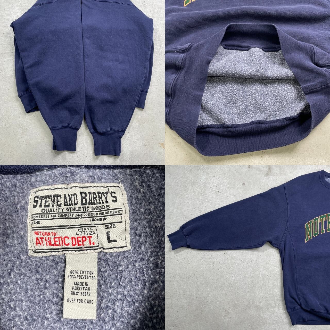 ■ 00年代 STEVE&BARRY'S カレッジ刺繍 リバースタイプ スウェットシャツ メンズL 古着 アメカジ 00s Y2K VINTAGE ヴィンテージ NORTRE DAME 紺色【スウェット】/ネイビー