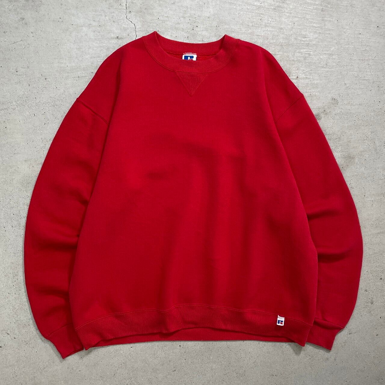 90年代 USA製 RUSSELL ATHLETIC ラッセル アスレチックス ブランクスウェットシャツ 無地 メンズXL 古着 90s ヴィンテージ VINTAGE アメカジ トレーナー 前Vガゼット 赤色【スウェット】/レッド