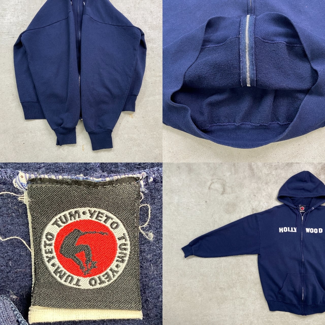 ■90年代 TUM YETO Skateboards HOLLY WOOD フルジップパーカー スウェットパーカー メンズXL 古着 90s ヴィンテージ VINTAGE スケートボード 紺色【スウェット】/ネイビー