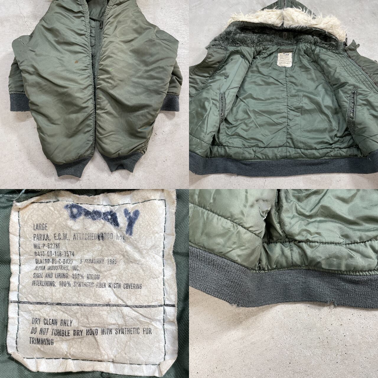 85年納品 U.S.AIR FORCE 米軍実品 N-2B フライトジャケット メンズL 古着 80s ヴィンテージ VINTAGE USAF ALPHA製 キルティングライナー アメカジ セージグリーン オリーブグリーン 【ミリタリージャケット】/グリーン