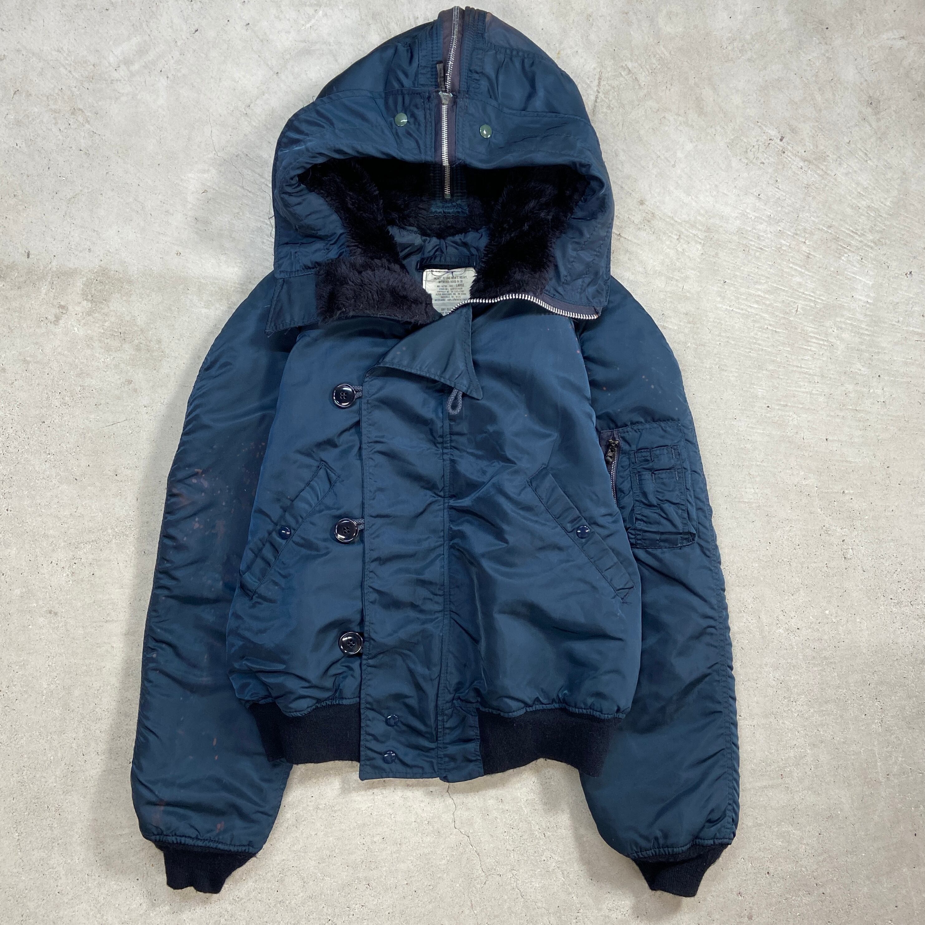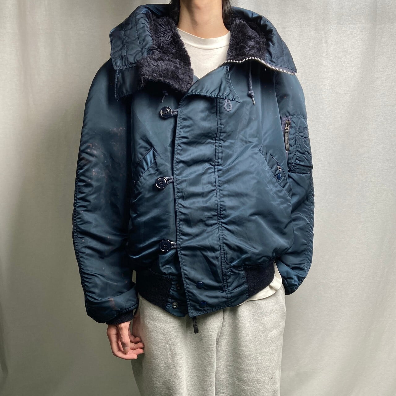 80年代 ブリーチ USA製 ALPHA アルファ N-2B フライトジャケット メンズL 古着 80s ヴィンテージ VINTAGE キルティングライナー アメカジ 紺色【ミリタリージャケット】/ネイビー