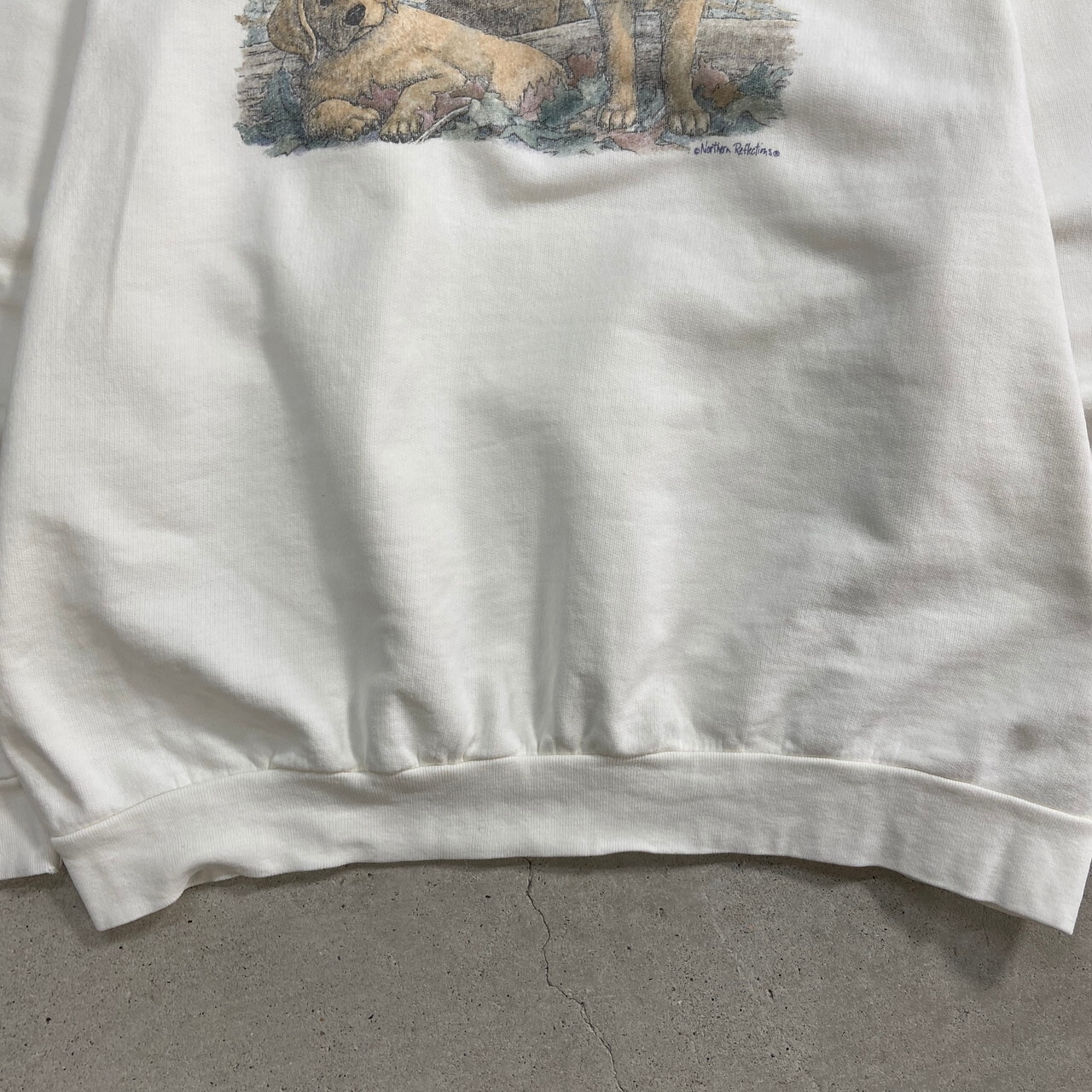 90年代 NORTHERN REFLECTIONS アニマルプリント スウェットシャツ イヌ メンズXL相当 古着 90s ヴィンテージ VINTAGE ラグランスリーブ 子犬 動物 アイボリー 生成り 白【スウェット】/ホワイトSS30