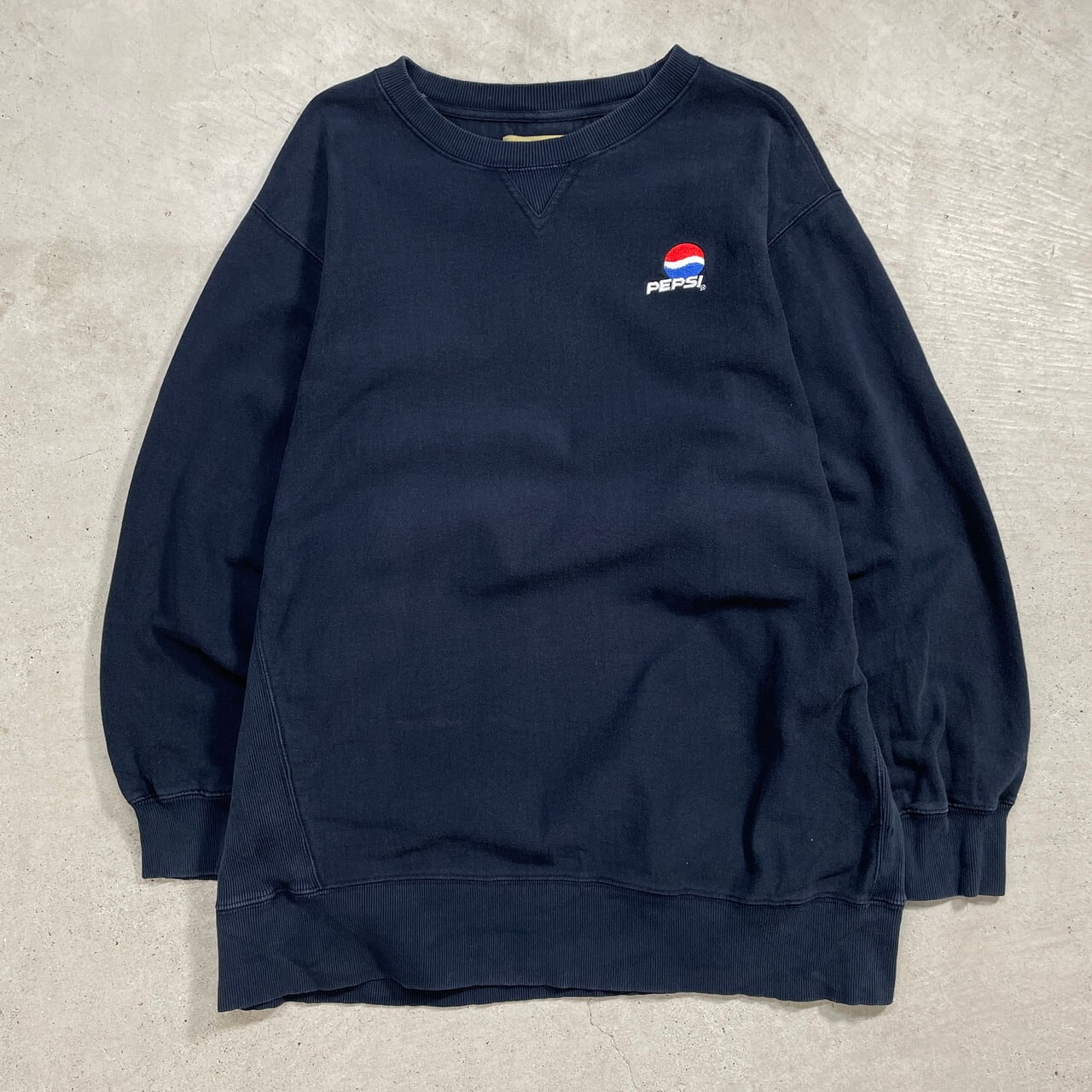 PEPSI ペプシコーラ 企業ロゴ刺繍 リバースタイプ スウェットシャツ メンズXL 古着 前Vガゼット アメカジ アドバタイジング 紺色【スウェット】/ネイビー