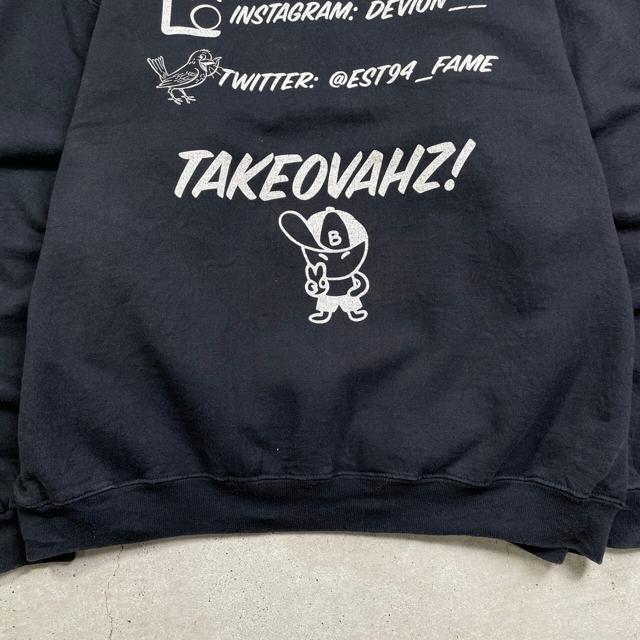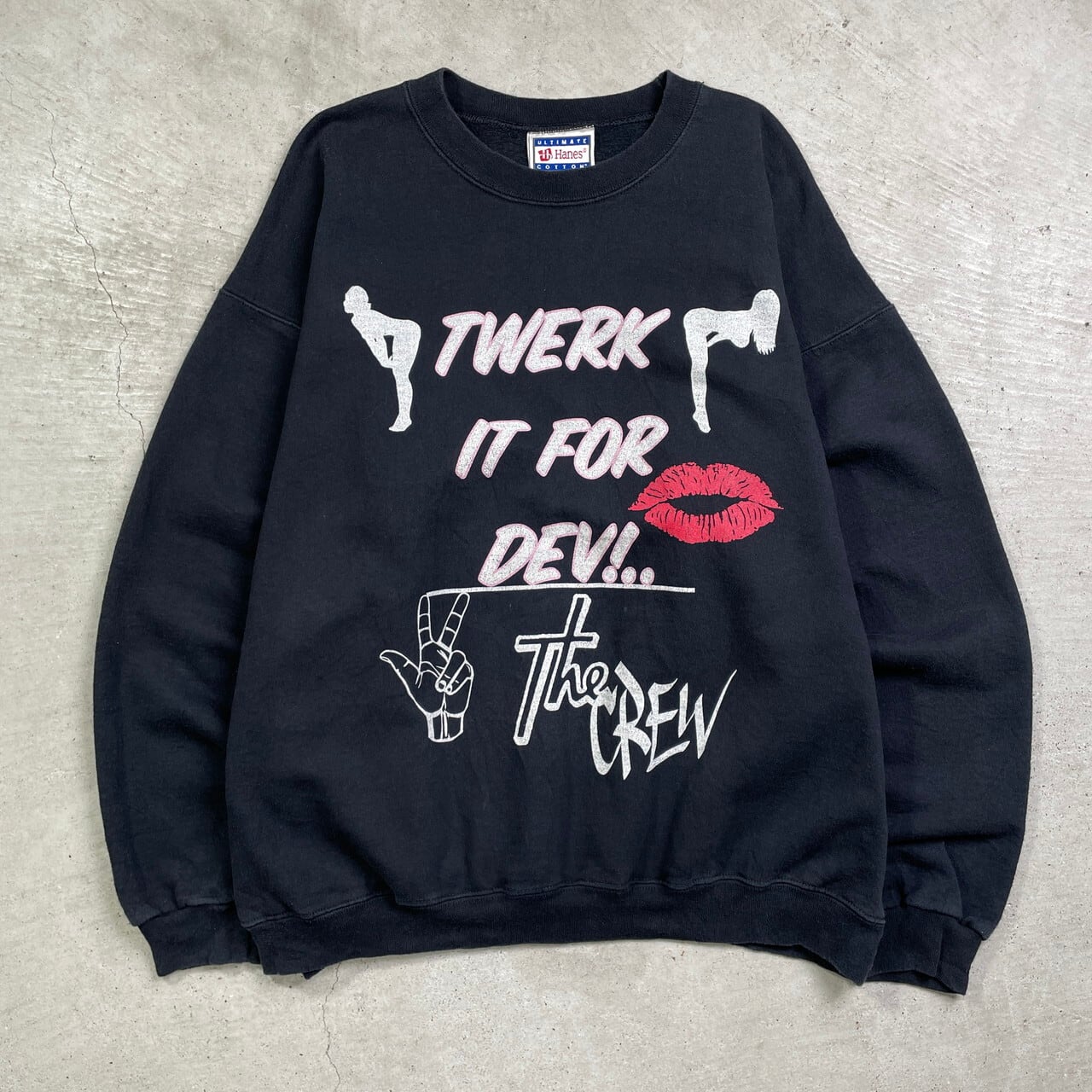 ■TWERK IT FOR DEV スウェットシャツ メッセージプリント メンズL 古着 裏起毛 トレーナー フェードブラック 墨黒【スウェット】/ブラック