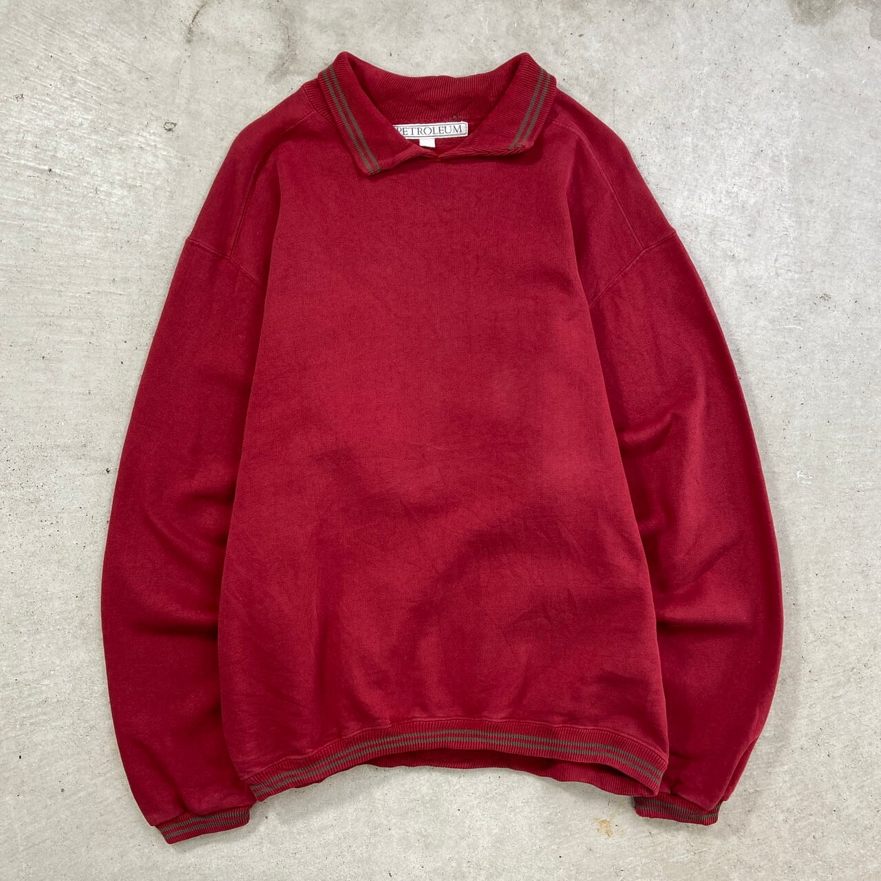 ヴィンテージ PETROLEUM 襟付き ブランクスウェットシャツ 無地 メンズL相当 古着 VINTAGE リブライン えんじ【スウェット】/ワインレッドSS30