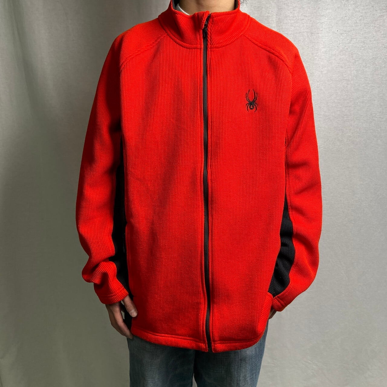■SPYDER スパイダー ワンポイント刺繍 ニットフリースジャケット メンズXXL 古着 昆虫 蜘蛛 クモ ビッグサイズ 大きいサイズ ツートンカラー 黒色 赤色【フリースジャケット】/マルチカラー