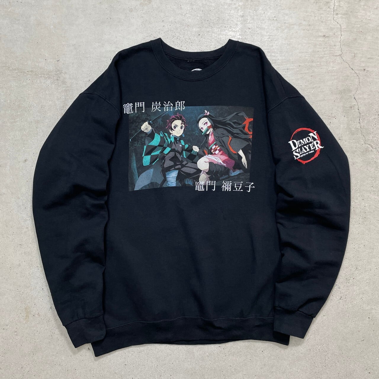 DEMON SLAYER 鬼滅の刃 スウェットシャツ アニメプリント キャラクター メンズL 古着 トレーナー 黒 【スウェット】/ブラックSS30