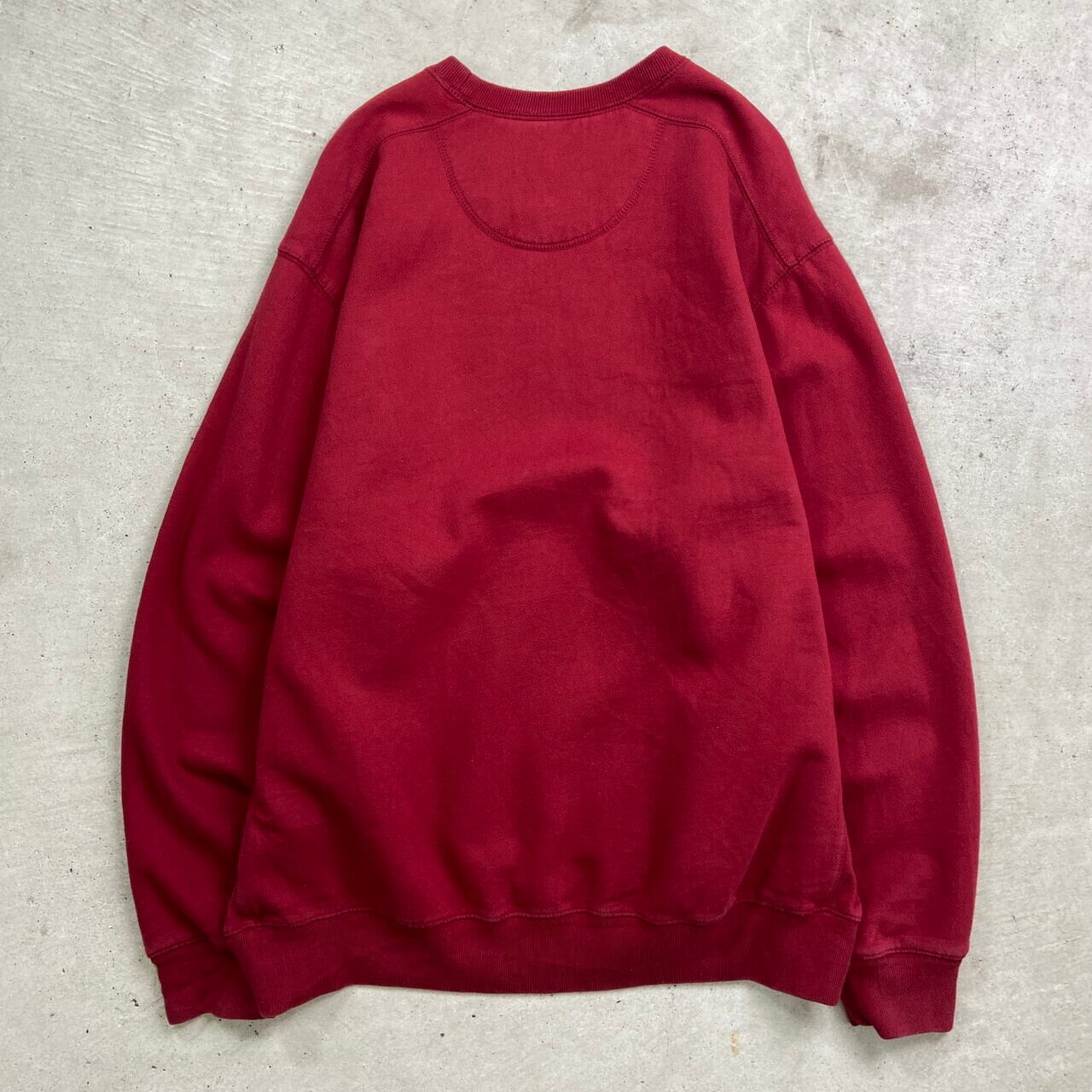 ■Eddie Bauer エディーバウアー ロゴ刺繍 リバースタイプ スウェットシャツ メンズ2XL相当 古着 アメカジ 前Vガゼット アウトドア ビッグサイズ 大きいサイズ 朱色【スウェット】/ワインレッド