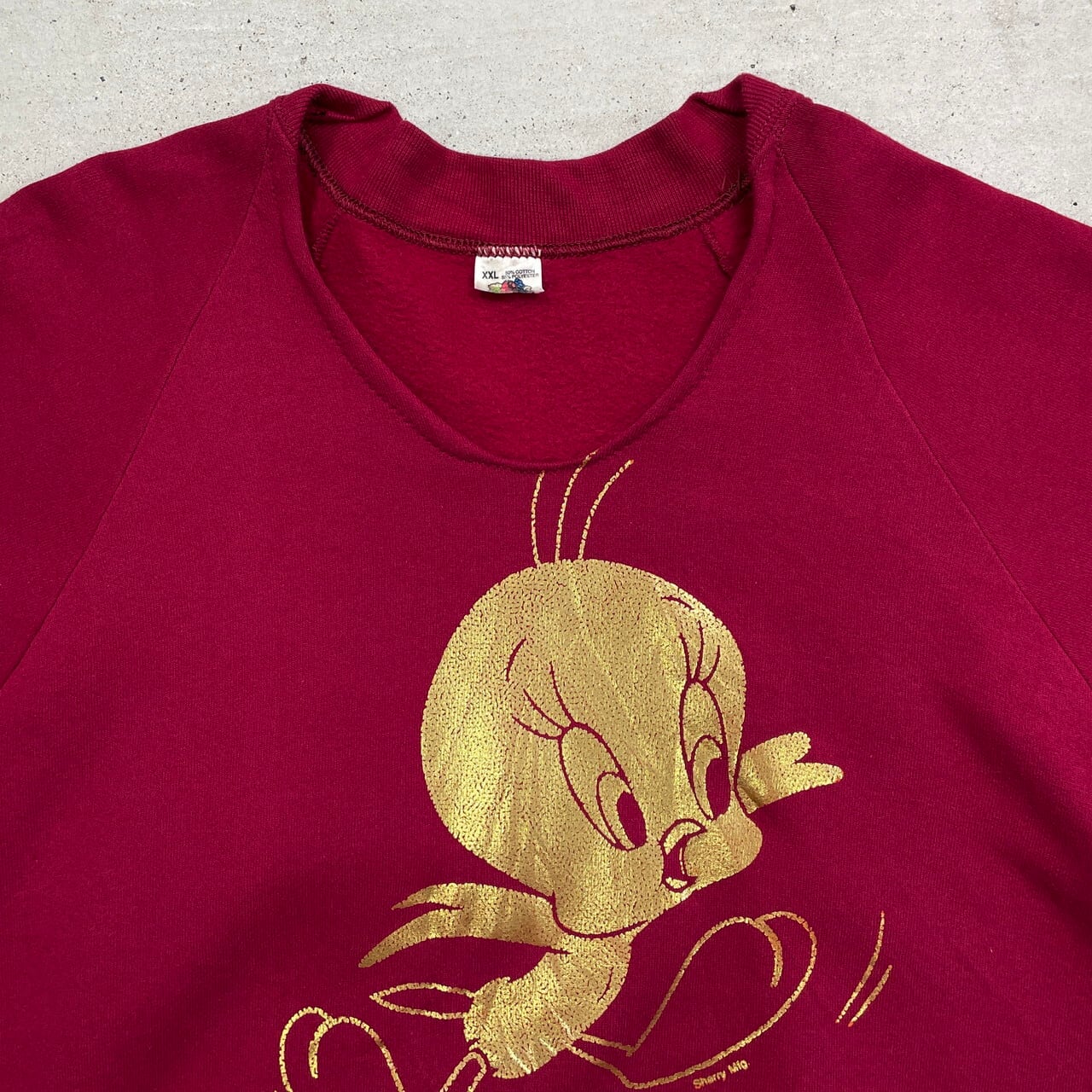 ■90年代 USA製 Looney Tunes ルーニー テューンズ トゥイーティー キャラクター スウェットシャツ メンズXXL レディース 古着 ラグラン カットオフリメイク 90s ヴィンテージ VINTAGE トレーナー WARNER BROS 1995 エンジ 朱色【スウェット】/ワインレッド