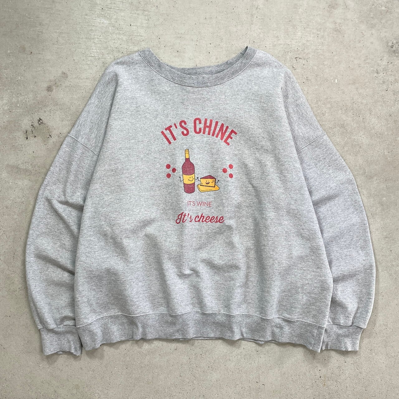 00年代 Hanes ヘインズ ワイン チーズ キャラクタープリント スウェットシャツ メンズXXL 古着 00s VINTAGE ヴィンテージ ビッグサイズ 大きいサイズ トレーナー 灰色【スウェット】/グレーSS30