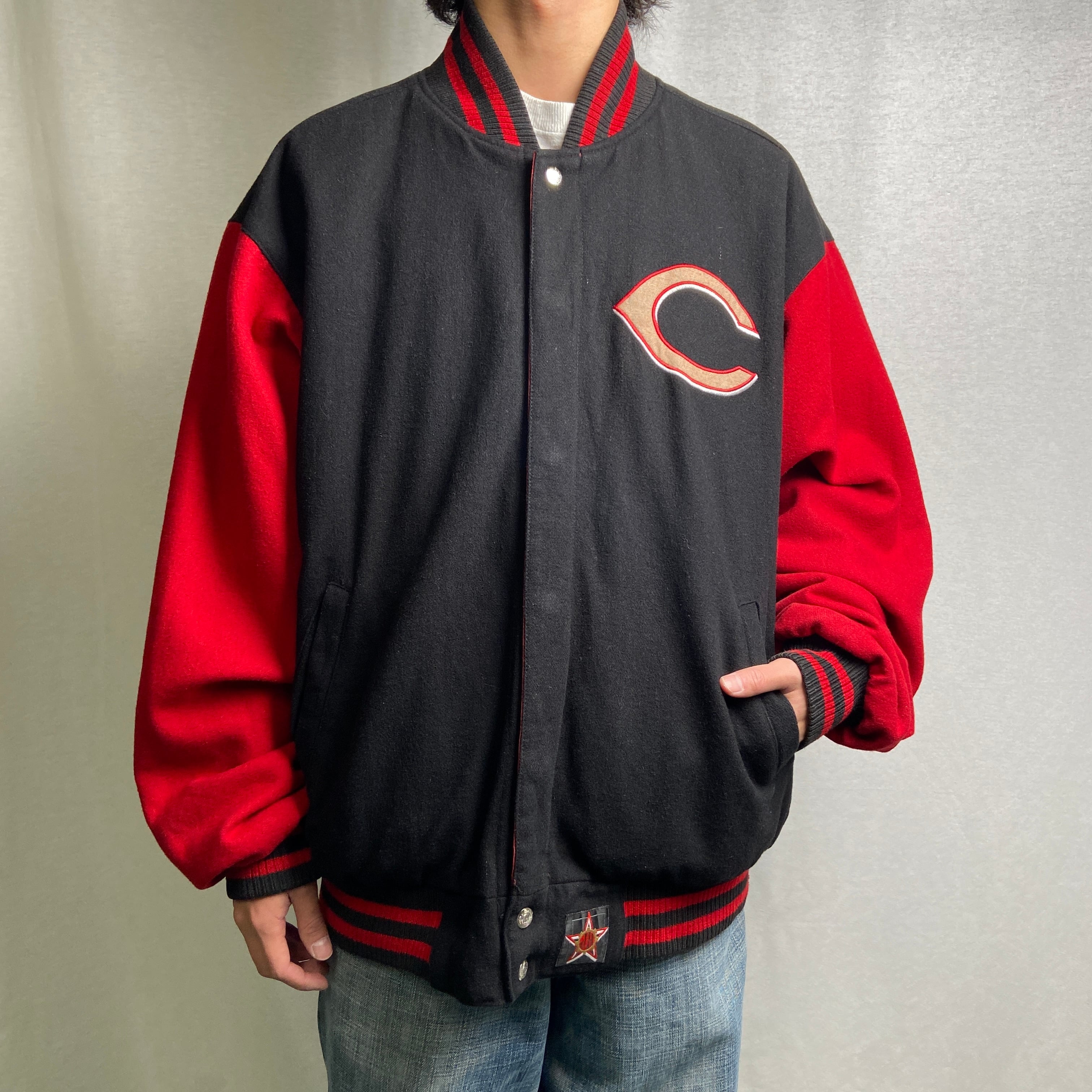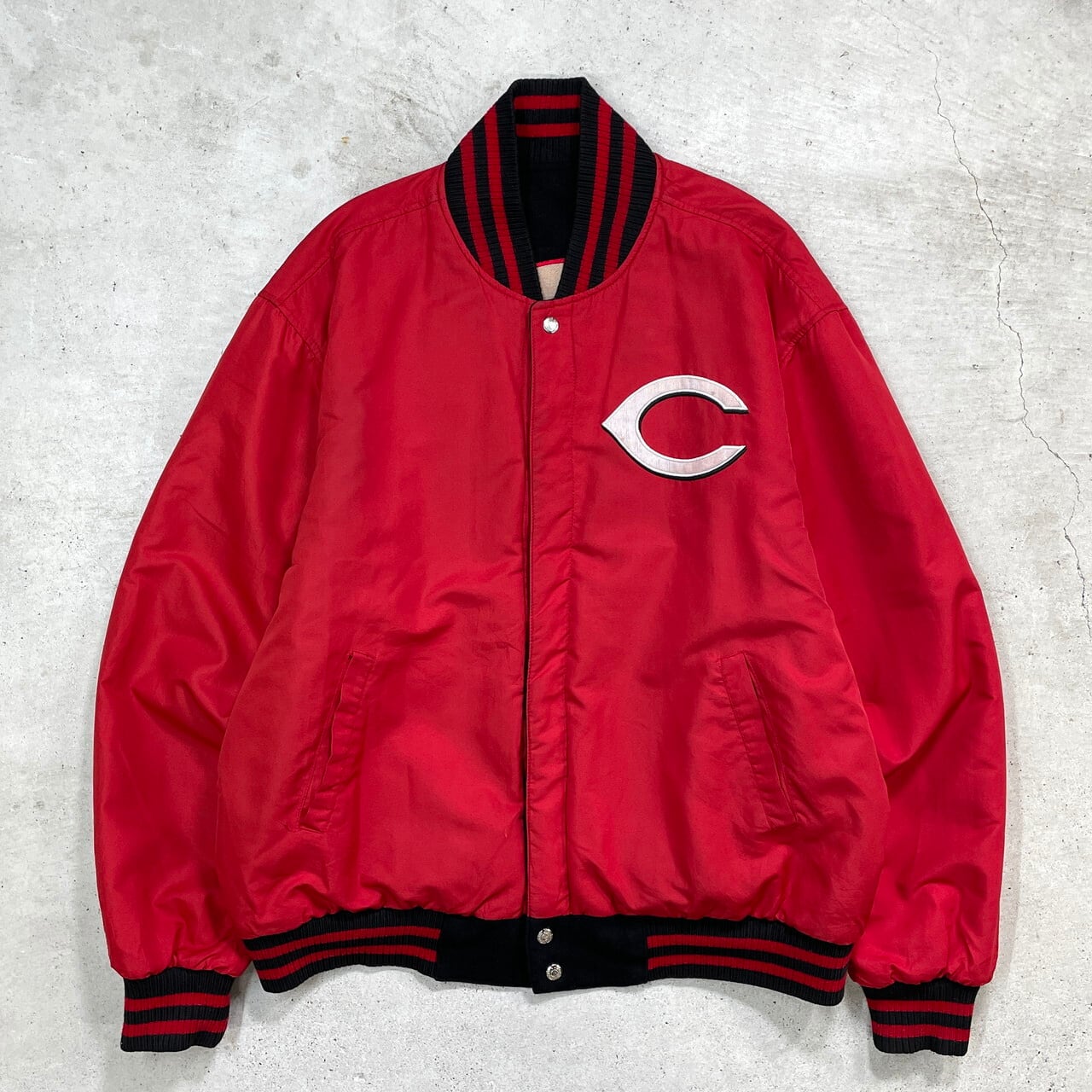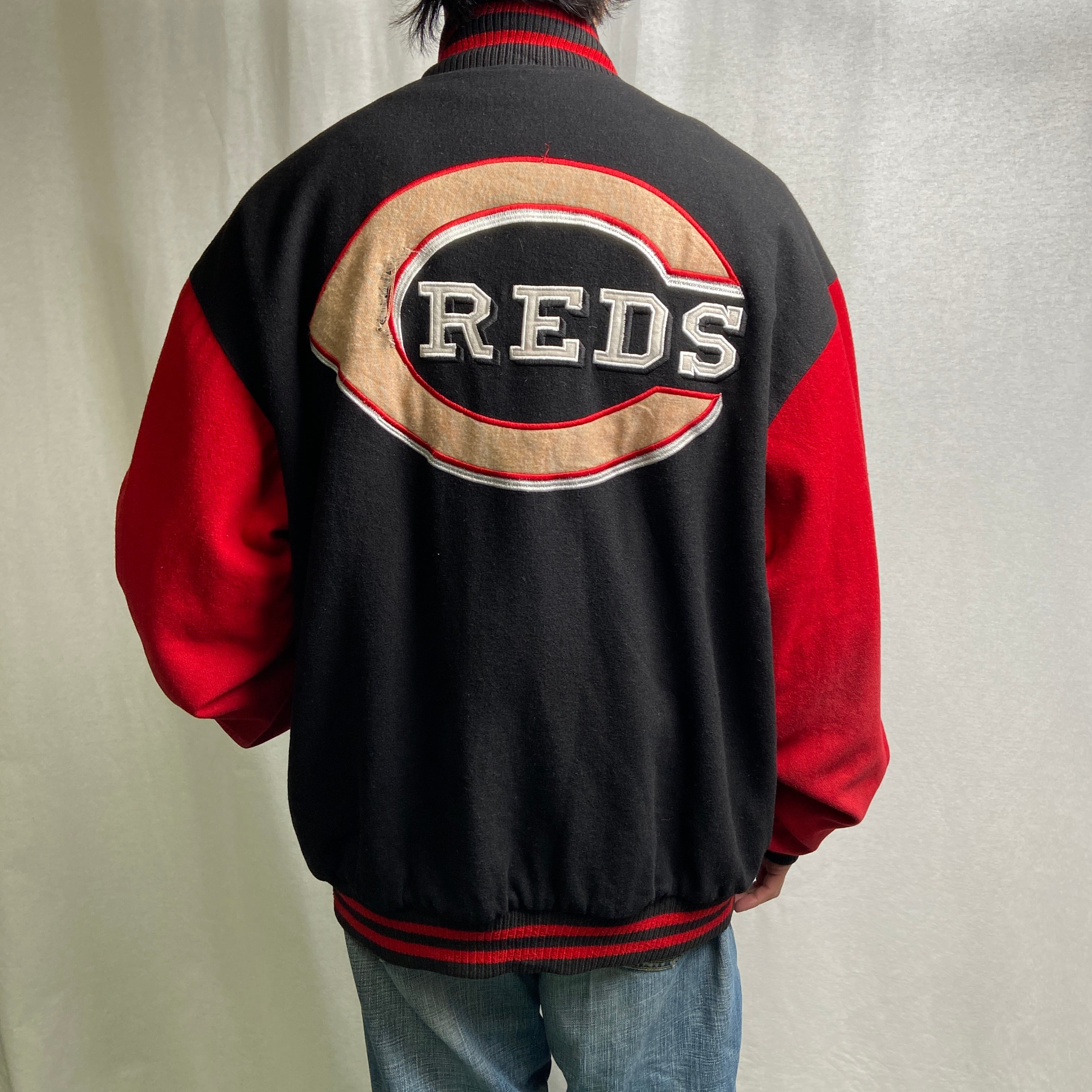 ■JH DESIGN ジェフハミルトン MLB スタジャン リバーシブルジャケット メンズXL 古着 ベースボール メジャーリーグ 刺繍 シンシナティ・レッズ 赤色 黒色 ブラック レッド【ブルゾン・ジャケット】/マルチカラー