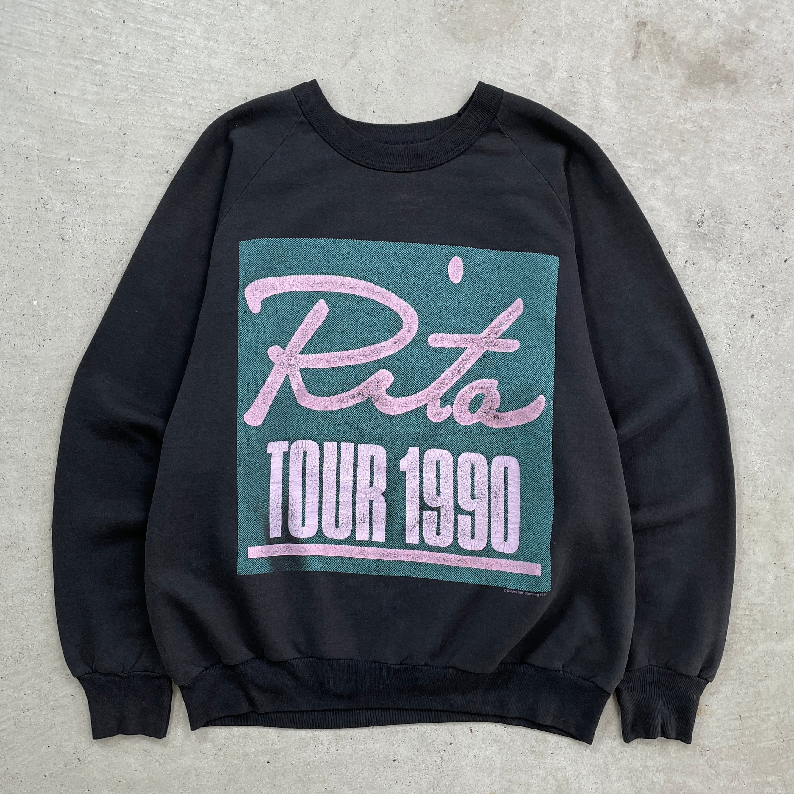 ■90年代 Rita TOUR 1990 プリントスウェットシャツ ラグランスリーブ メンズM相当 古着 90s VINTAGE ヴィンテージ フェードブラック 黒色【スウェット】/ブラック