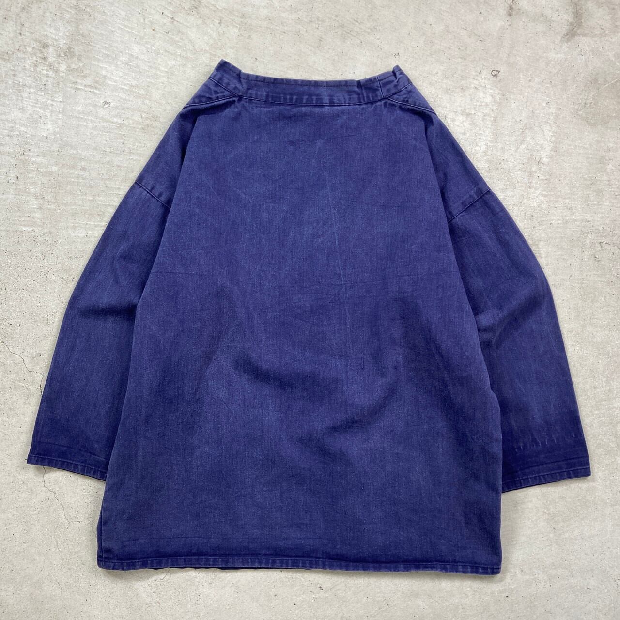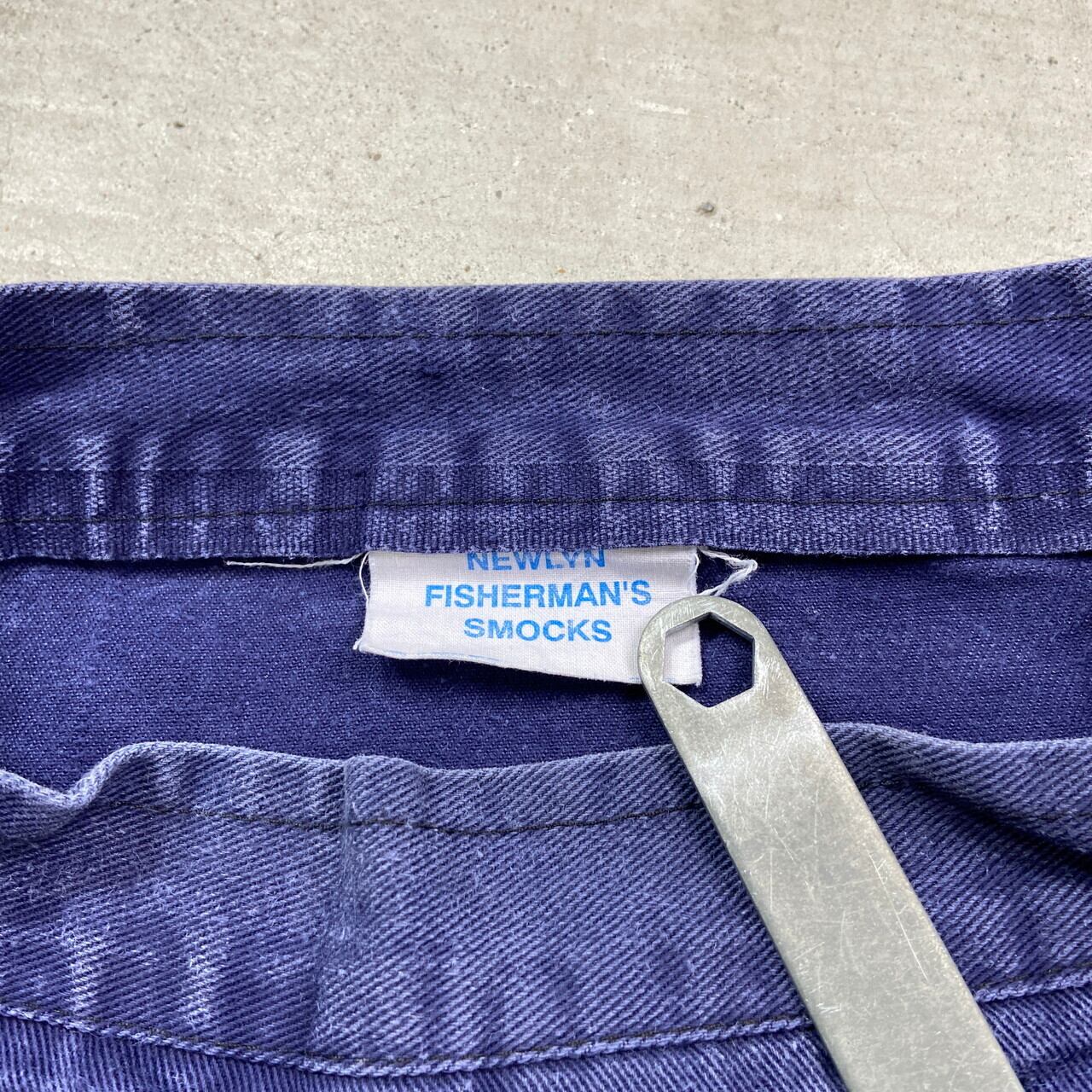 ■80年代 イングランド製 NEWLYN フィッシャーマンスモック ユーロ メンズXL相当 古着 80s ヴィンテージ VINTAGE ナス紺 フェード 紺色【コットンジャケット】/ネイビー