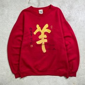 ■00年代 "羊" 4701 YEAR OF SHEEP 漢字 プリントスウェットシャツ メンズL 古着 00s Y2K ヴィンテージ VINATGE 中国カレンダー 赤 【スウェットシャツ】/レッド