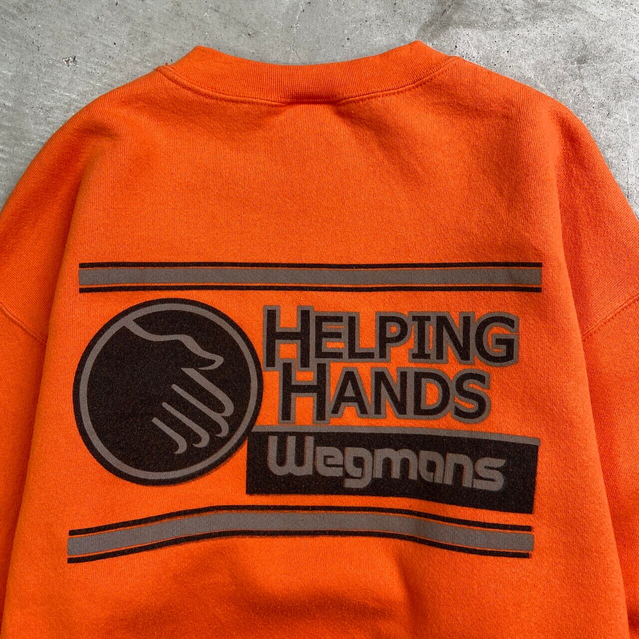 00年代 Lee リー 企業ロゴ リフレクタープリントスウェットシャツ メンズL 古着 00s Y2K ヴィンテージ VINATGE アメカジ ワンポイント企業ロゴ WEGMANS HELPING HANDS キャロットオレンジカラー【スウェットシャツ】/オレンジSS30