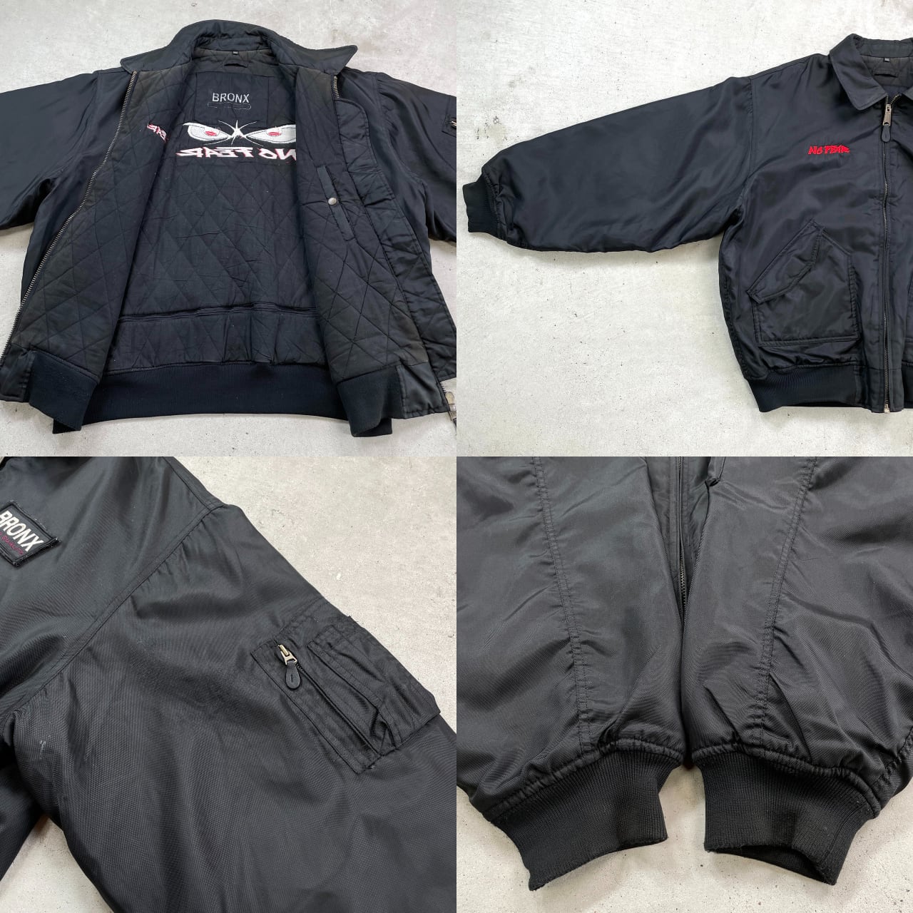 ■BOOTLEG NO FEAR CWUタイプ ミリタリー フライトジャケット ロゴ刺繍 メンズ2XL 古着 ブートレグ ノーフィア サーフ スケート ストリート ボンバージャケット キルティングライナー シガレットホルダー付き 黒色 ビッグサイズ 大きいサイズ【ミリタリージャケット】/ブラック