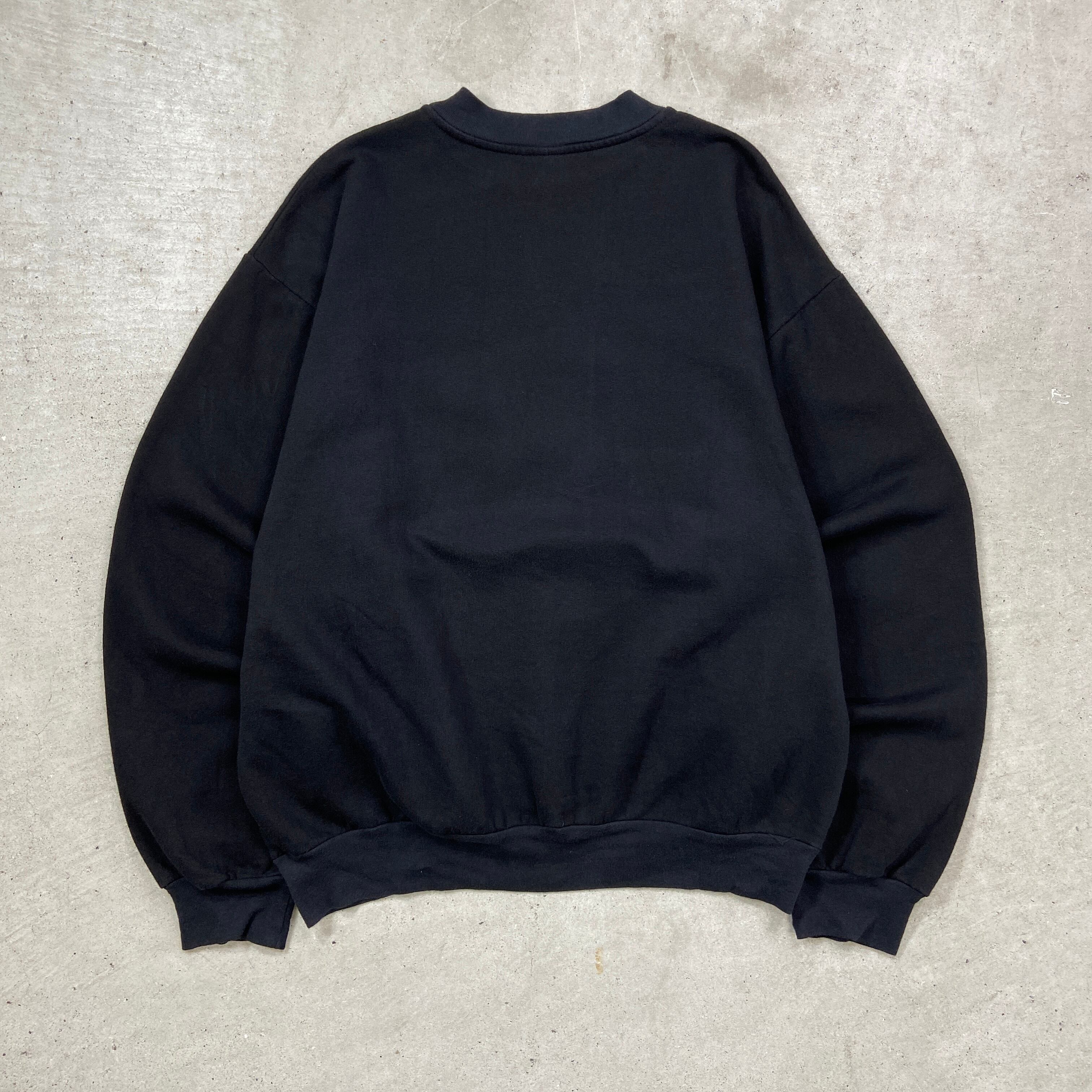 ■Faded グラフィックスウェットシャツ フェルト生地プリント メンズL 古着 裏起毛 トレーナー BIGSIZE 大きいサイズ 黒色【スウェット】/ブラック