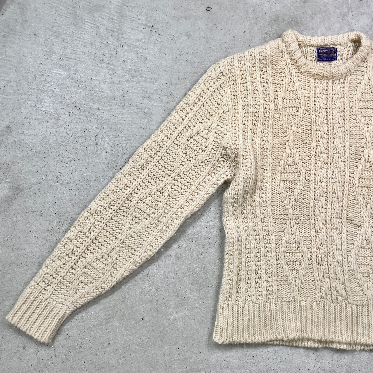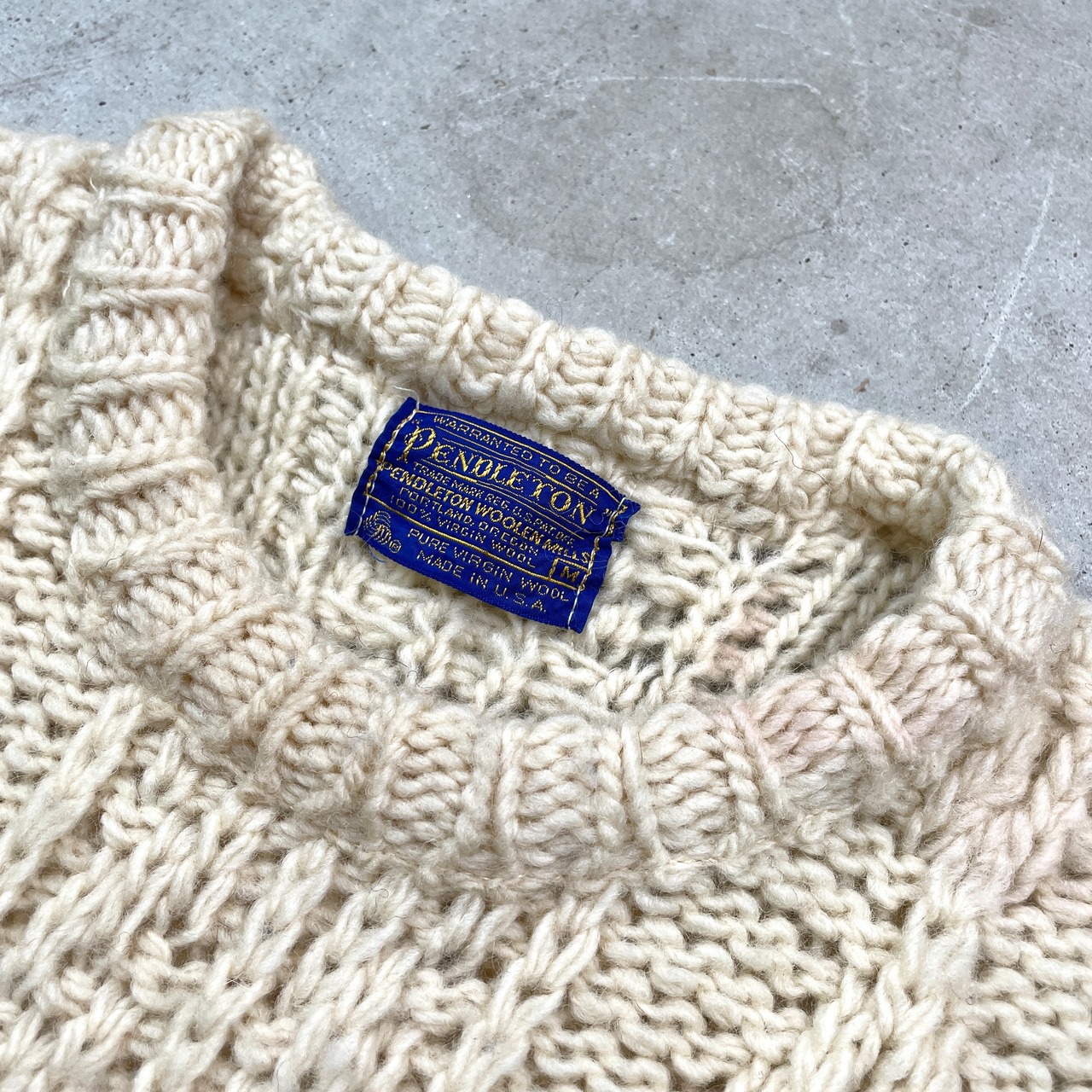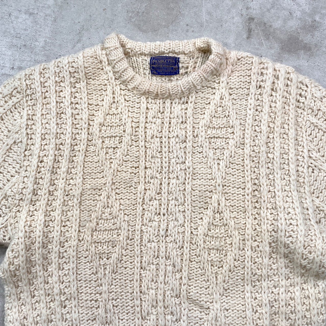 ■70年代 USA製 PENDLETON ペンドルトン ウールニットセーター フィッシャーマン メンズM 古着 70s VINTAGE ヴィンテージ アメカジ アイボリー 生成り【ニットセーター】/ホワイト