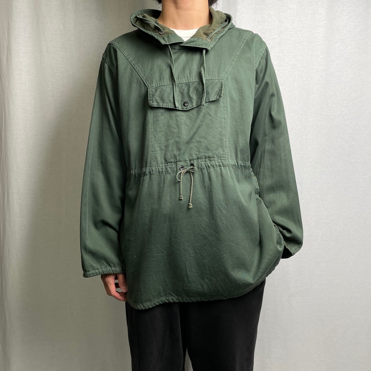 ■ヴィンテージ NANU NANA コットンアノラックパーカー メンズL 古着 サイドポケット付き VINTAGE オリーブグリーン 緑色【コットンジャケット】/カーキグリーン