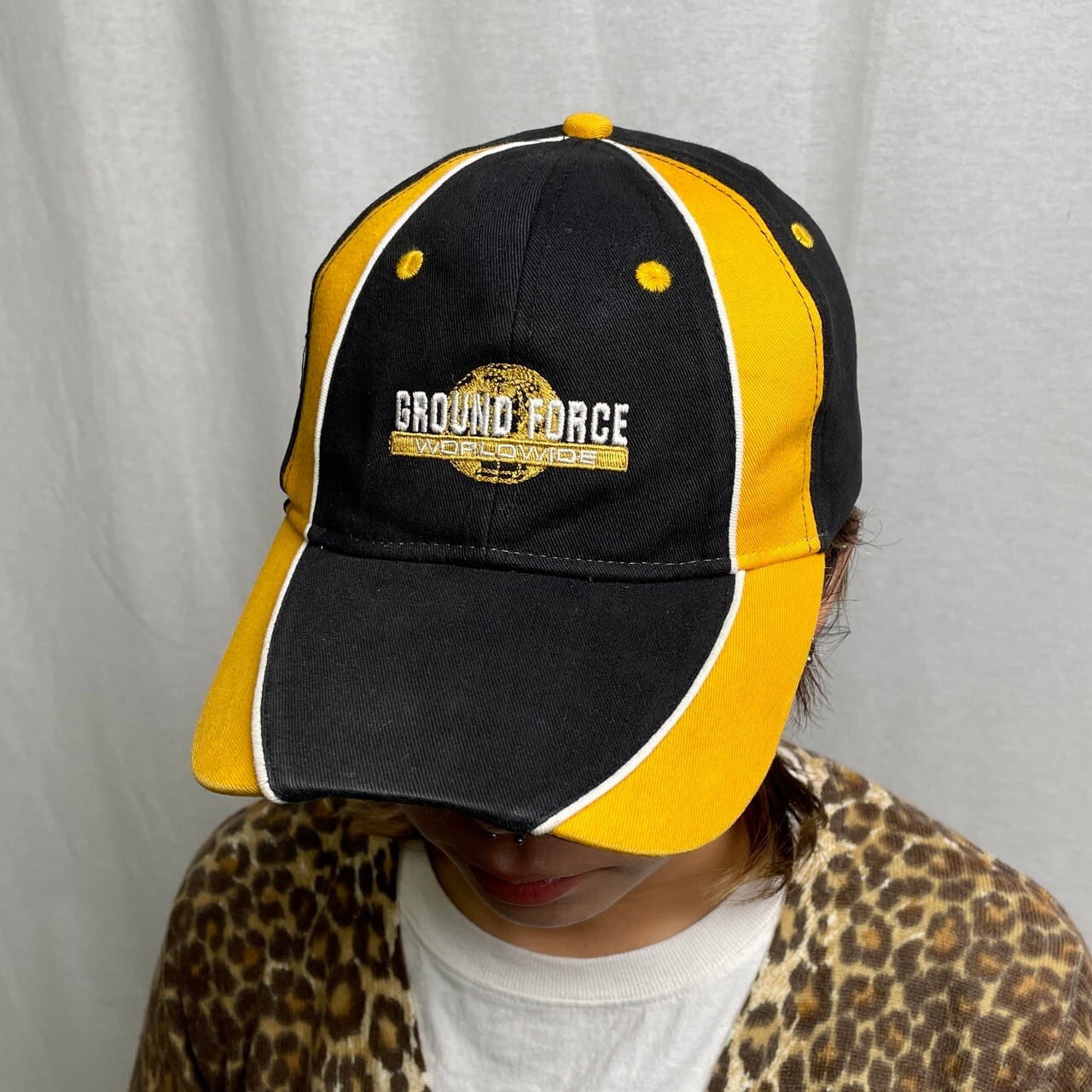 ■GROUND FORCE WORLDWIDE ベースボールキャップ 企業ロゴ刺繍 ツートンカラー メンズ レディース 古着 ユニセックス ブラック イエロー 黒 黄色【帽子】/マルチカラー