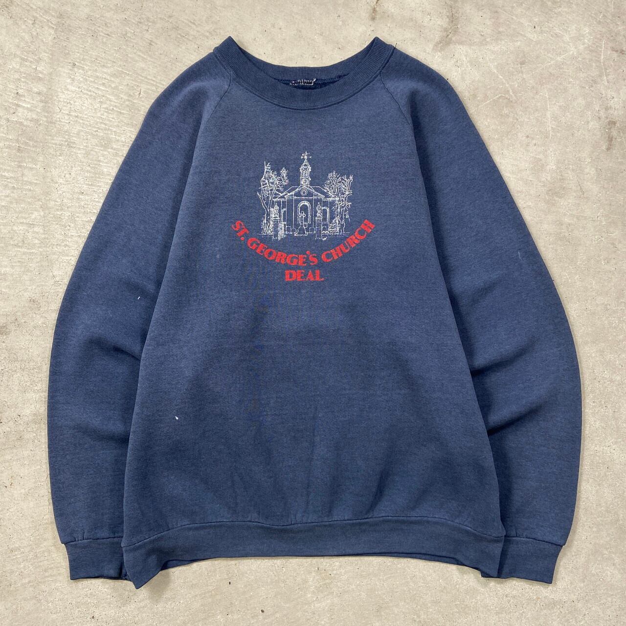 ■ 80年代 ST. GEORGE'S CHURCH DEAL プリントスウェットシャツ メンズL相当 古着 80s ヴィンテージ ビンテージ アメカジ 教会 トレーナー 紺色 フェードネイビー【スウェット】/ネイビー